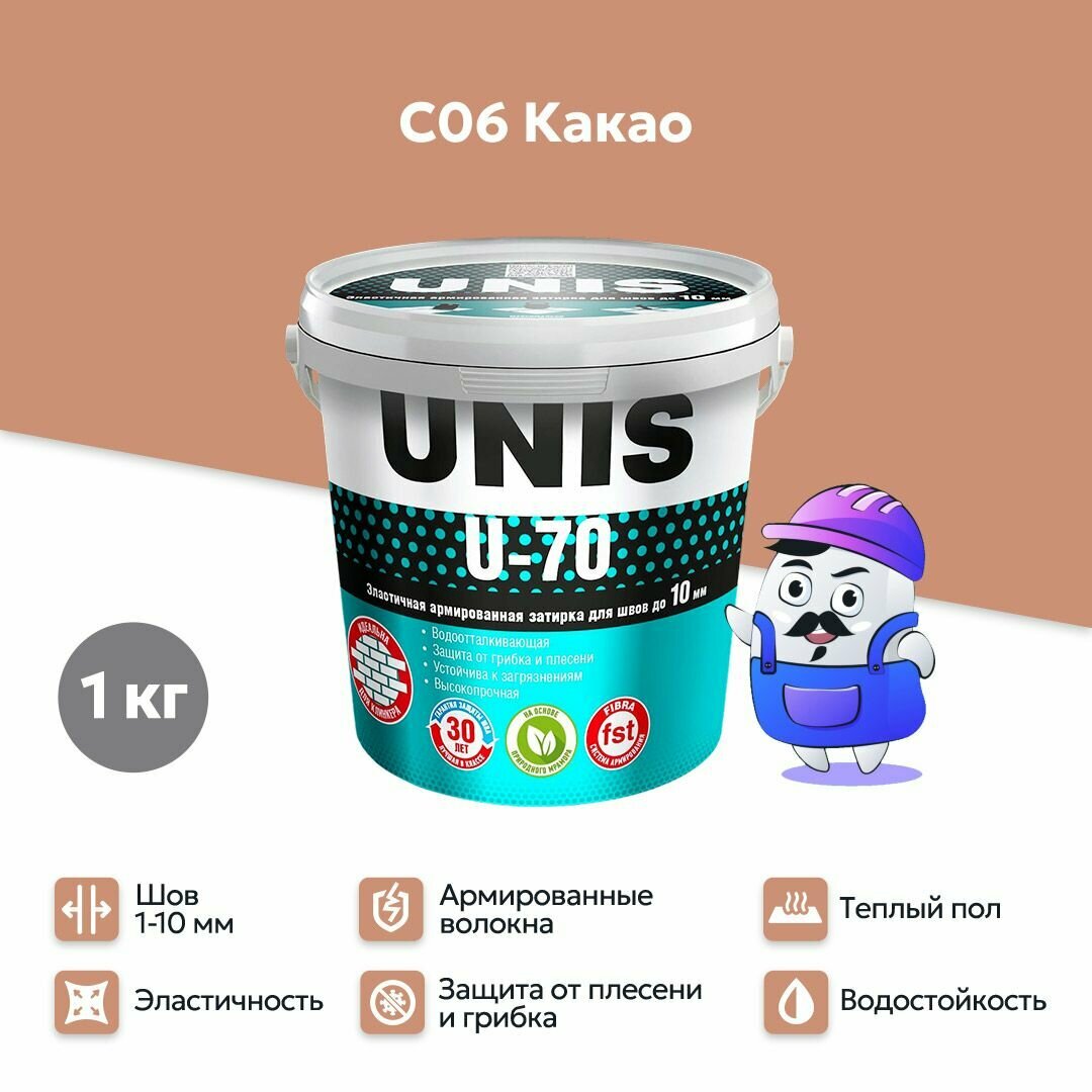 Затирка для плитки эластичная UNIS U-70 2 кг какао С06/ Цементная армированная с защитой от грибка и плесени
