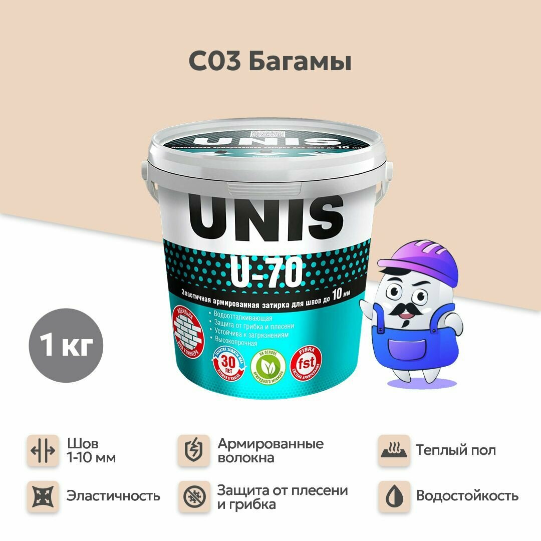 Затирка для плитки эластичная UNIS U-70 2 кг багамы С03/ Цементная армированная с защитой от грибка и плесени