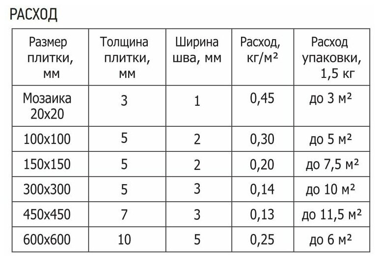 | Расход | 0.15–0.6 кг/м² |
