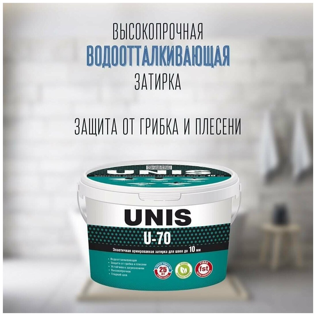Затирка для плитки эластичная UNIS U-70 2 кг белая С01/ Цементная армированная с защитой от грибка и плесени