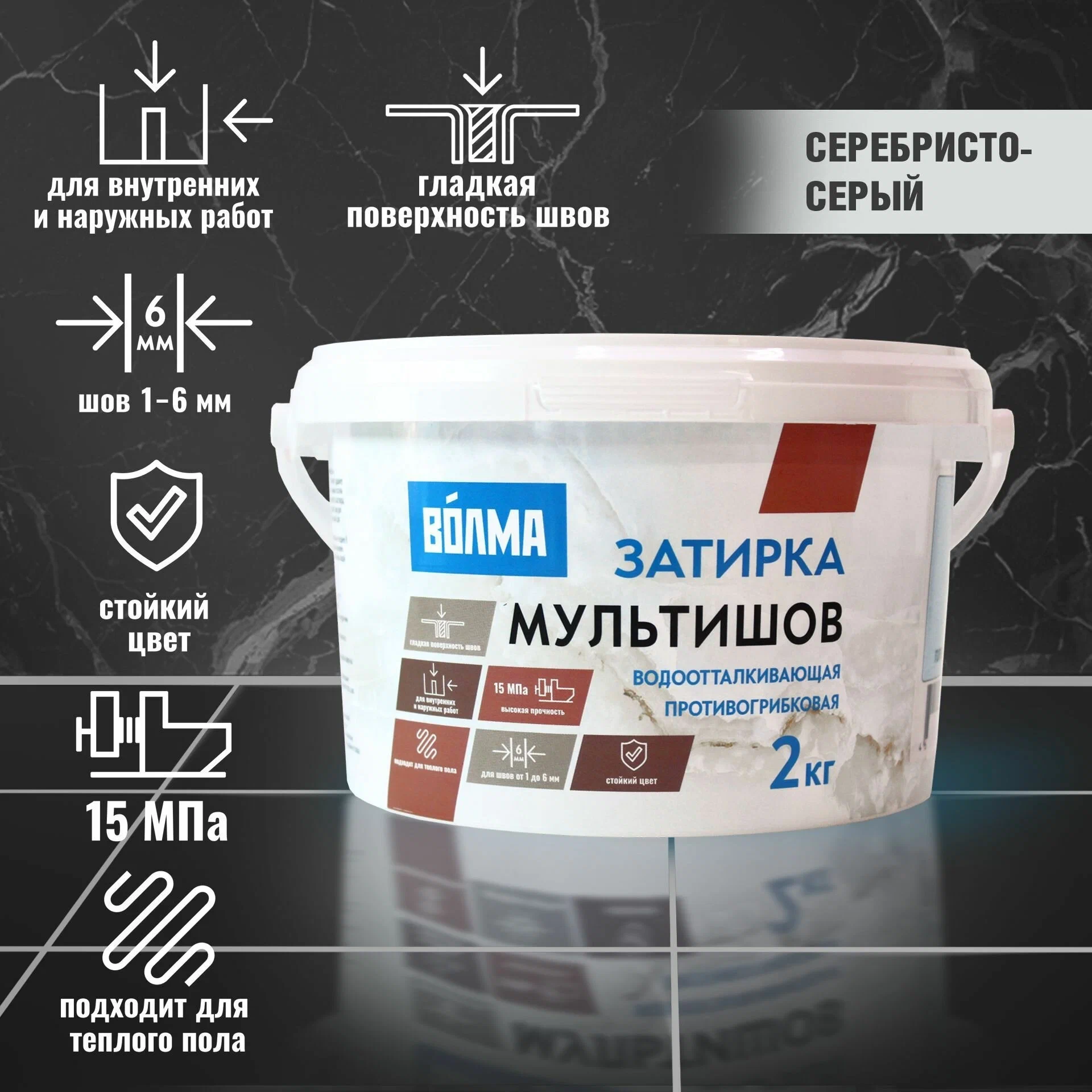 Затирка для плитки волма Мультишов 2 кг, серебристо-серый, водоотталкивающая, противогрибковая