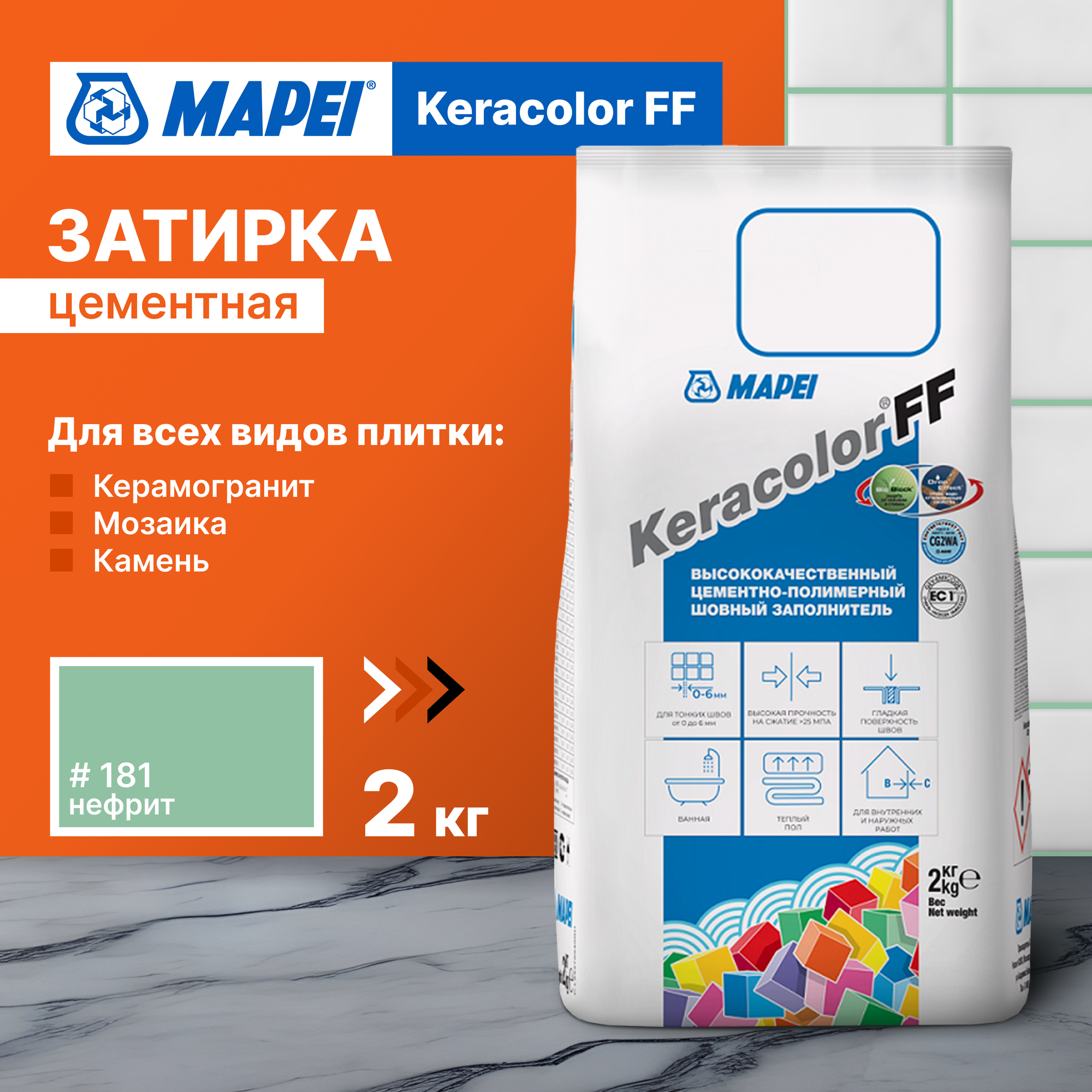 Затирка цементная Mapei Keracolor FF 181 цвет нефрит 2 кг интересное: