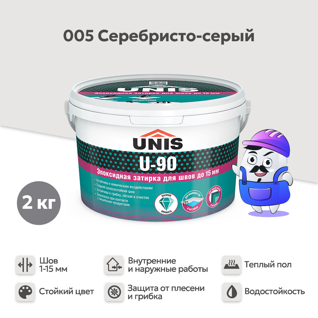 Затирка эпоксидная для швов ЮНИС / UNIS U-90 Серебристо-серый 005 (2кг)