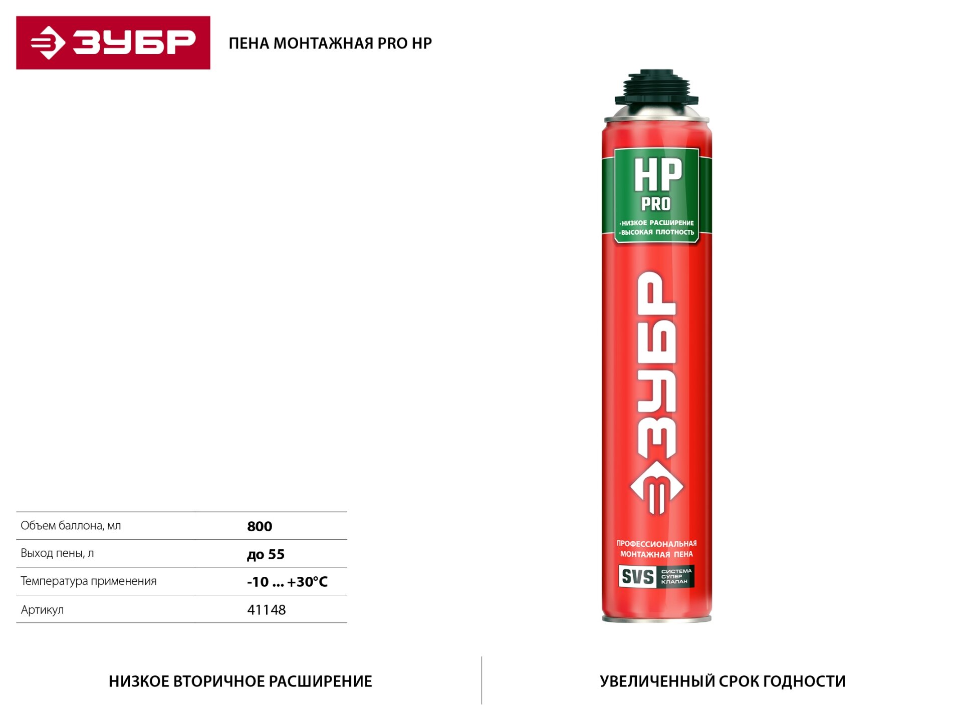 Монтажная пена ЗУБР PRO HP с низким расширением 800мл выход до 50л пистолетная (41148) интересное: