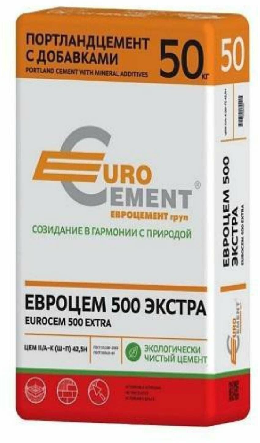 Купить Евроцемент Цемрос цемент ЦЕМ II/А-Ш 42,5Н М-500 Д20 (50кг) / EUROCEMENT Цемрос портландцемент М500 Д20 Экстра ЦЕМ II/А-Ш 42,5Н (50кг)