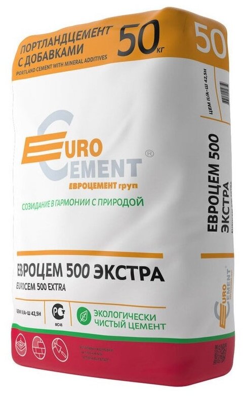 Евроцемент Цемрос цемент ЦЕМ II/А-Ш 42,5Н М-500 Д20 (50кг) / EUROCEMENT Цемрос портландцемент М500 Д20 Экстра ЦЕМ II/А-Ш 42,5Н (50кг) интересное: