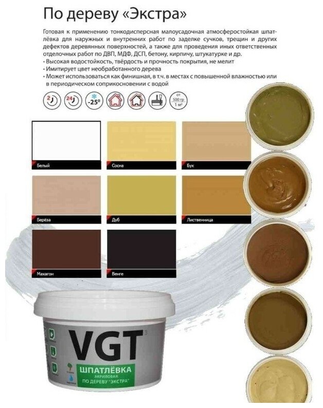 VGT ВГТ Шпатлёвка по дереву экстра белая 0,3кг