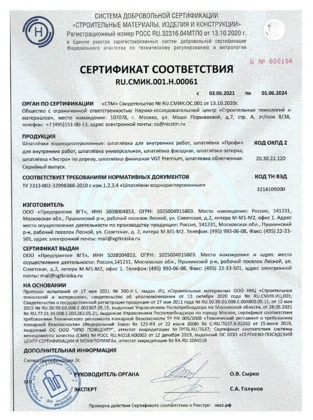 | Вид шпатлевки | финишная |