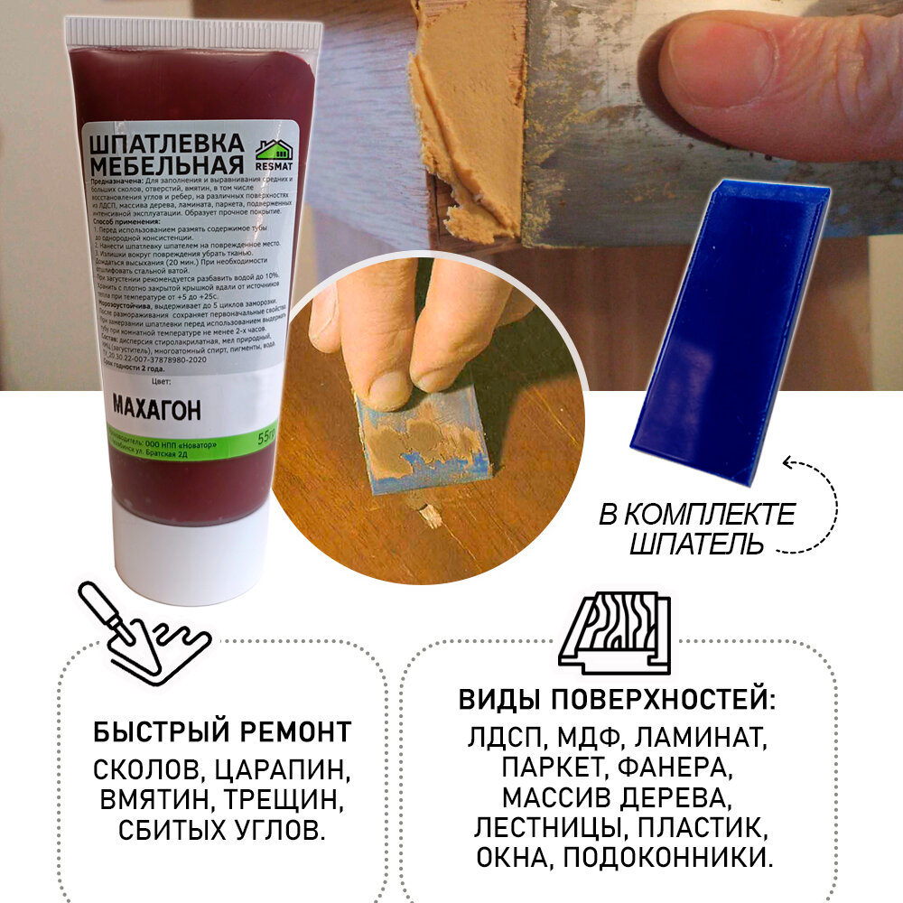 Ниже Вы можете прочитать отзывы на Шпатлевка мебельная без блистера, ремонт мебели ламината - цвет Махагон, ознакомится с подробными характеристиками, посмотреть интересные обзоры и фотографии на Шпатлевка мебельная без блистера, ремонт мебели ламината - цвет Махагон.