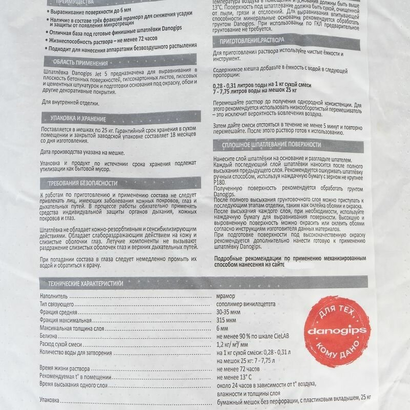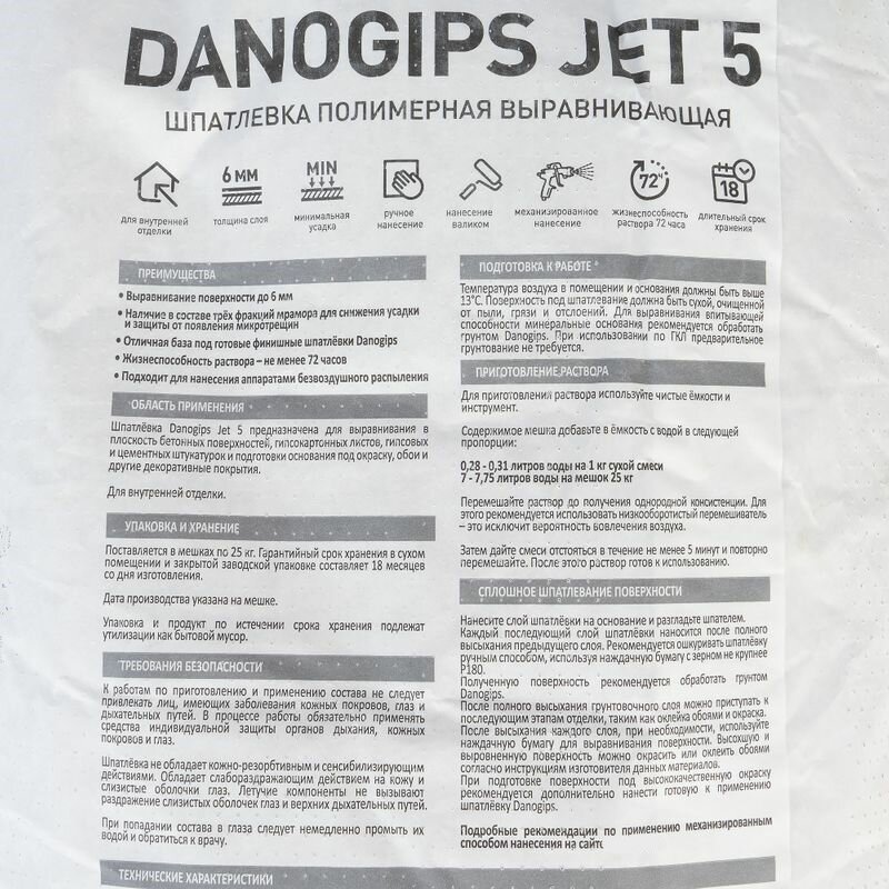Шпатлевка DANOGIPS JET 5 полимерная 25 кг интересное:
