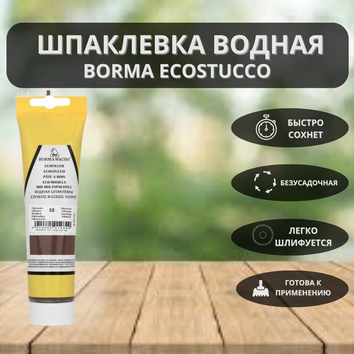 Шпаклевка водная BORMA ECOSTUCCO по дереву - 200гр в тубе, 1шт, 17 тик 1510TE.200