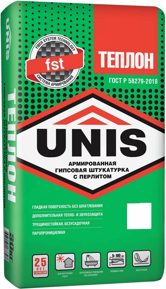 Юнис Теплон штукатурка гипсовая армированная (30кг) / UNIS Теплон армированная гипсовая штукатурка с перлитом (30кг) интересное: