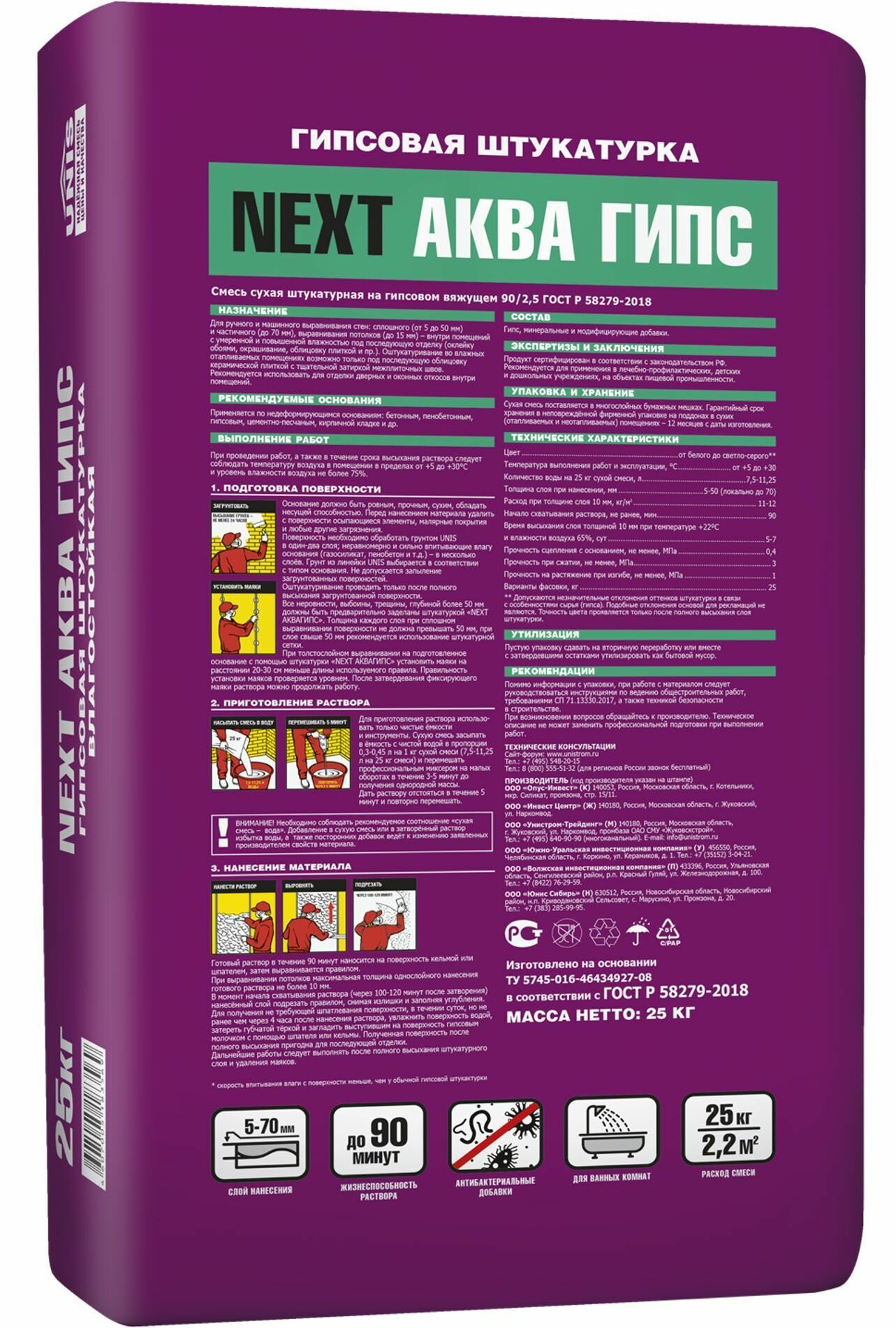 Юнис Next Аква Гипс штукатурка гипсовая (25кг) / UNIS Next Аква Гипс штукатурка гипсовая влагостойкая (25кг) интересное: