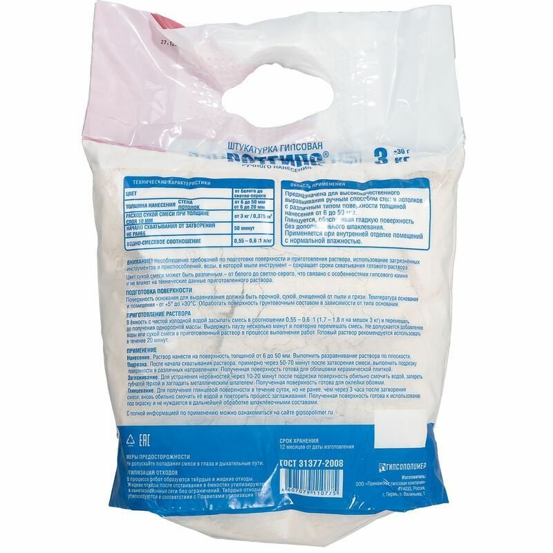 Штукатурка "ГП Ротгипс" (3кг) гипсовая интересное: