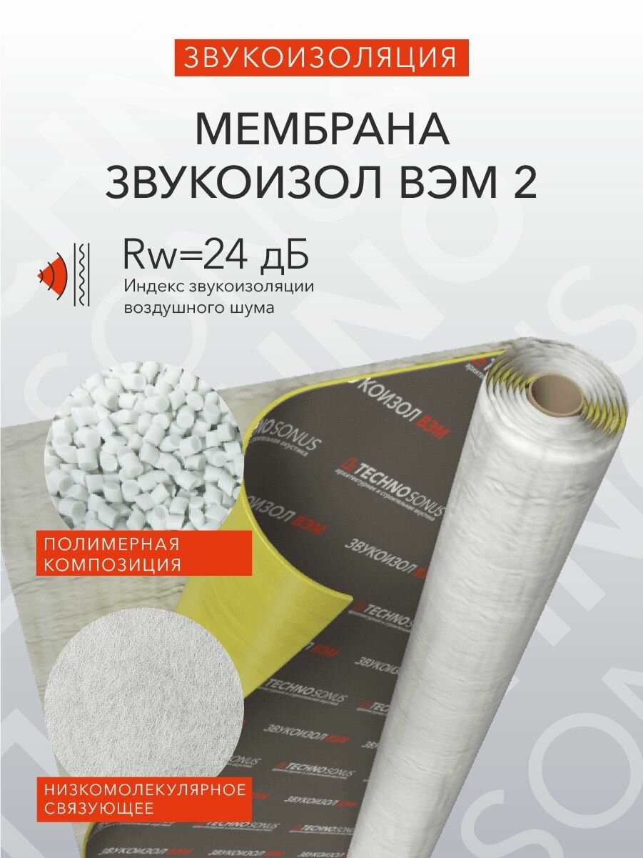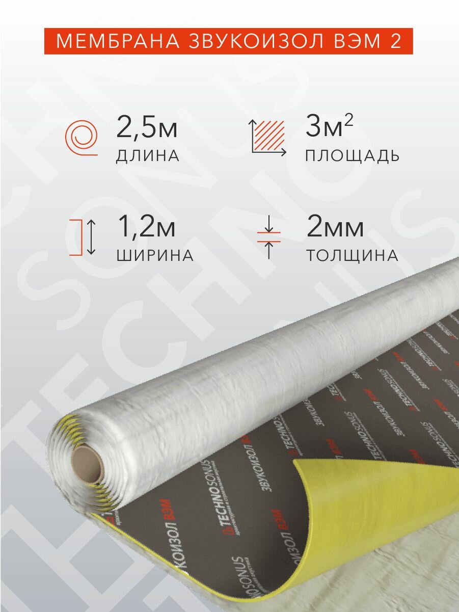 Мембрана Звукоизол ВЭМ 2 (2,5м x 1,2м x 2мм) 3м2 интересное: