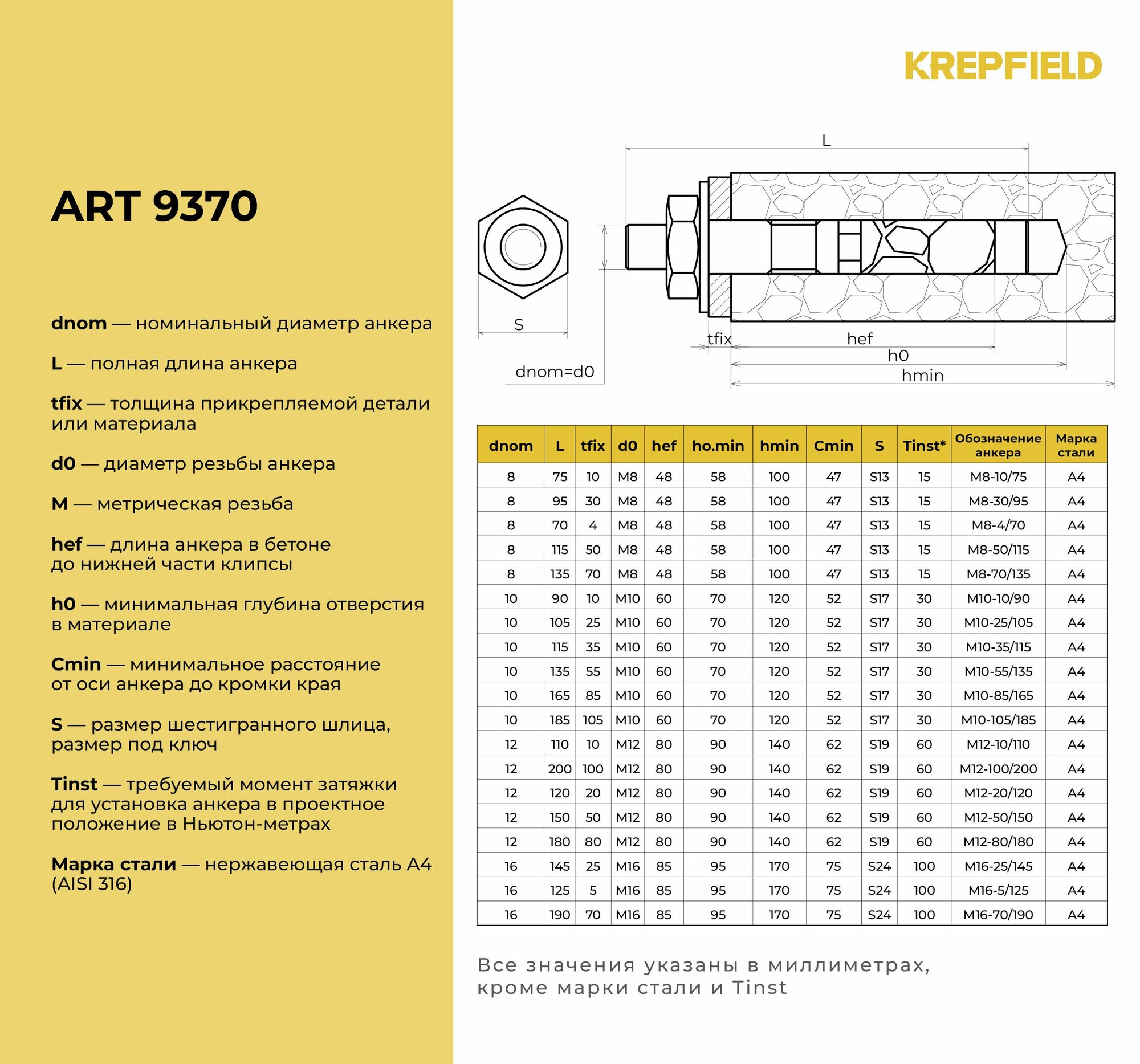 Анкер Нержавеющий М8-10/75 распорный ART 9370 А4 1 шт. интересное: