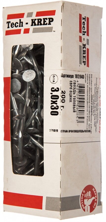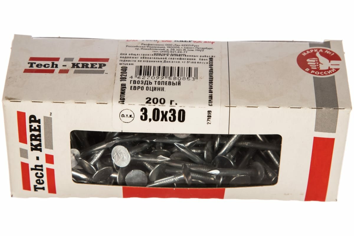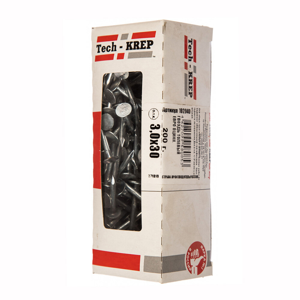 Толевый оцинкованный гвоздь евро Tech-Krep 3.0х30, 200г, коробка 102040