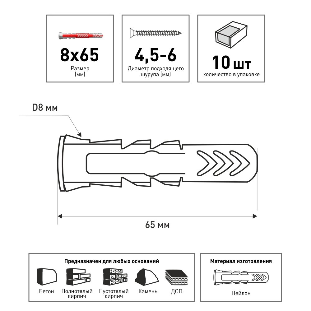 | Материал дюбеля | нейлон |