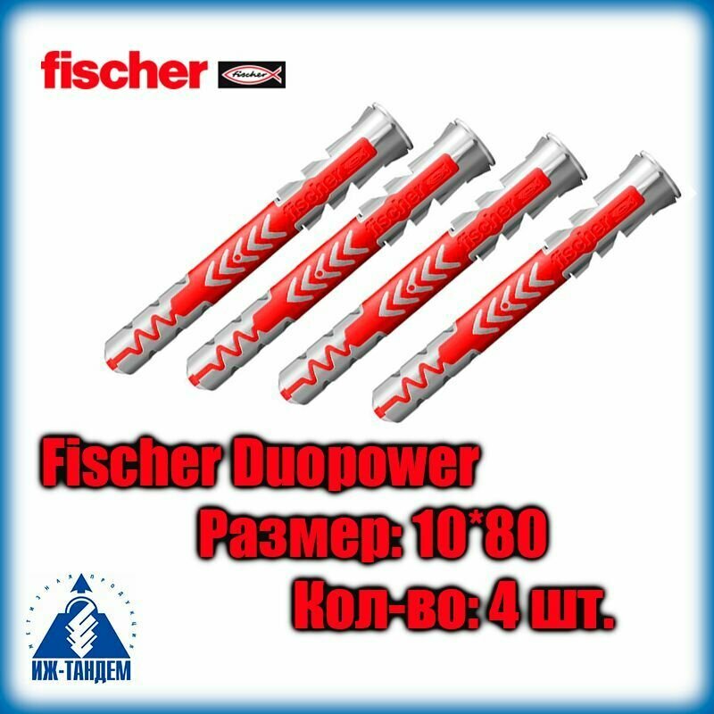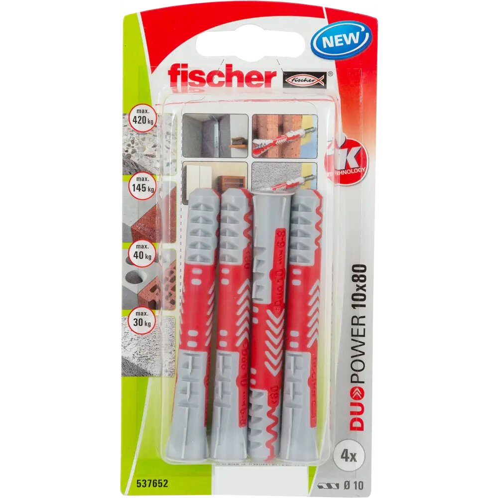 10x80 мм + шуруп, 4 шт., DUOPOWER дюбель Fischer универсальный, высокотехнологичный, двухкомпонентный нейлон.