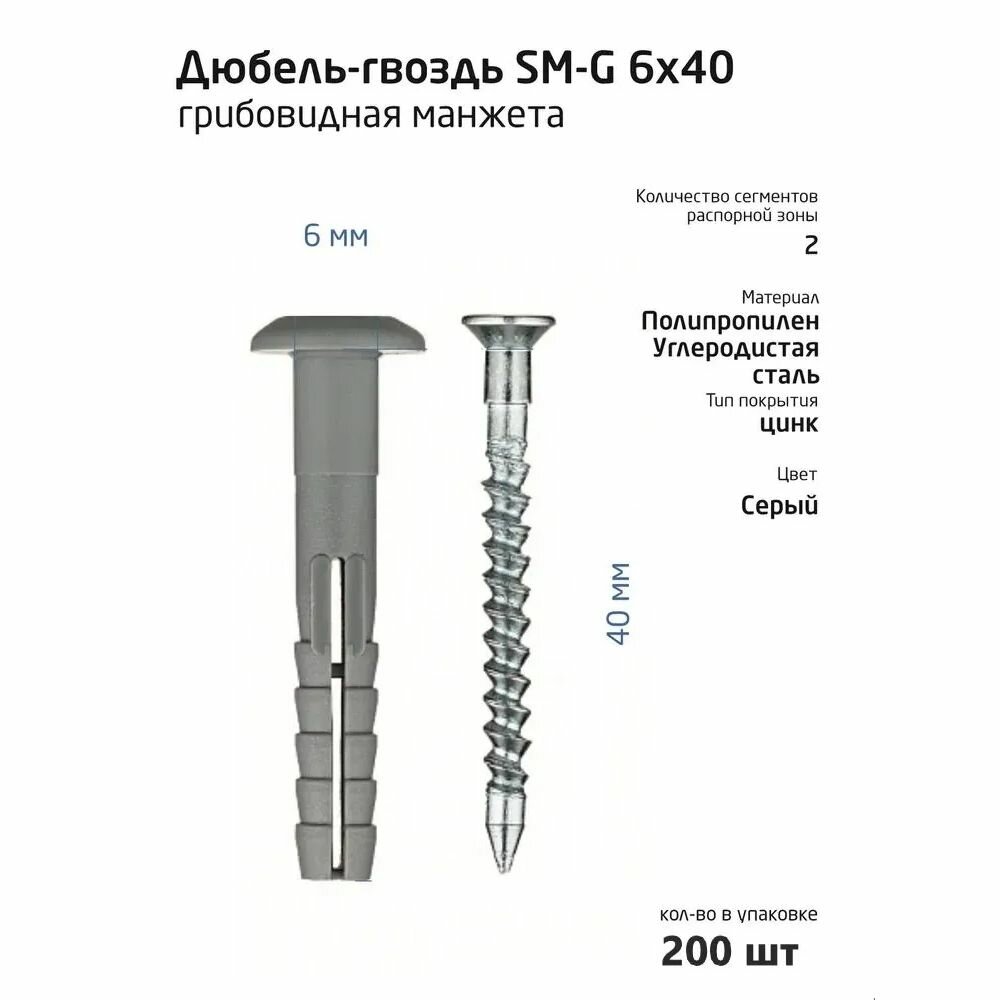 Дюбель гвоздь Tech-Krep SM-G/6*40мм грибковый (200 шт) интересное: