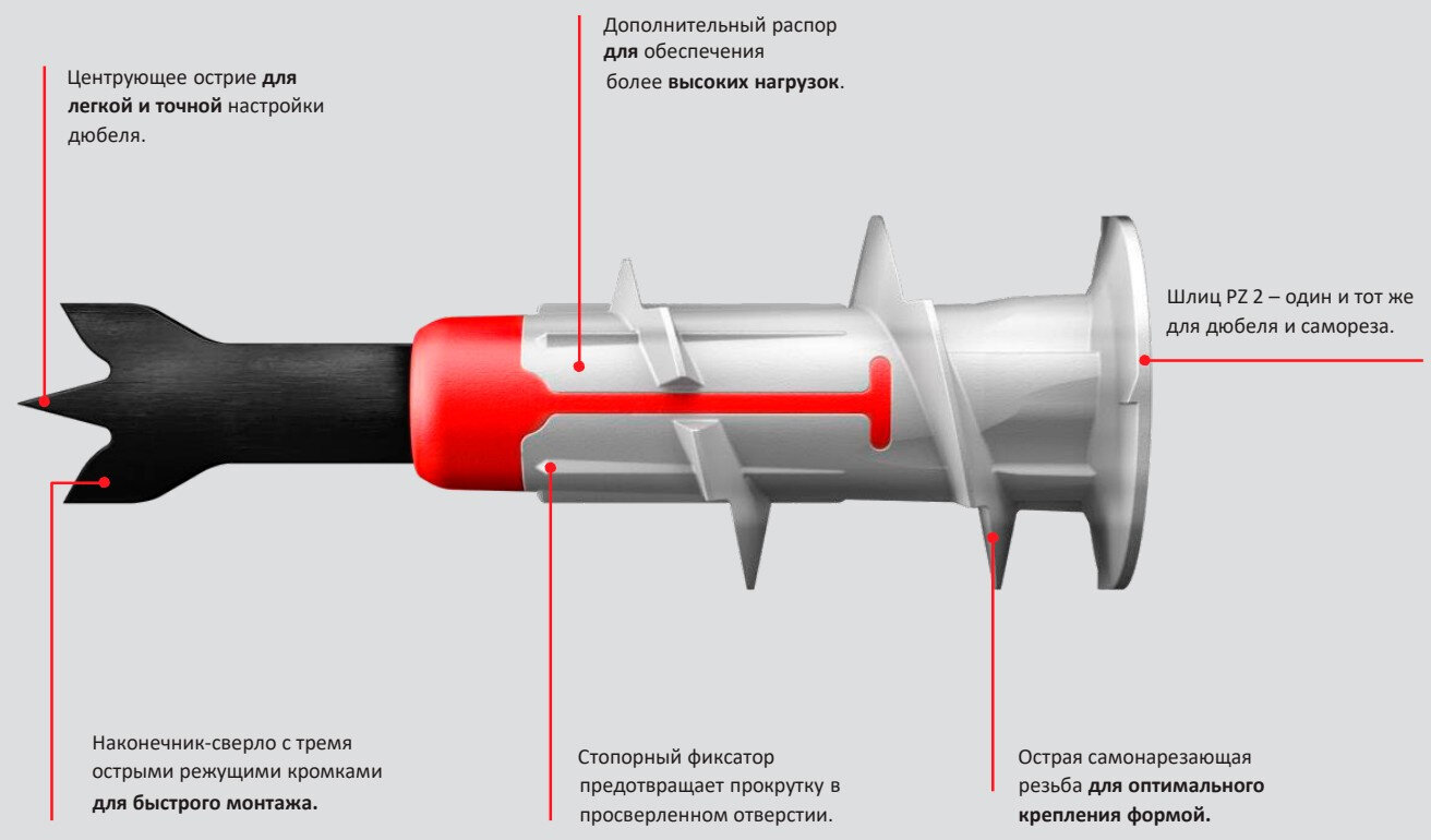 | Дополнительная информация | PZ 2 - одинаковый шлиц для дюбеля и шурупа |