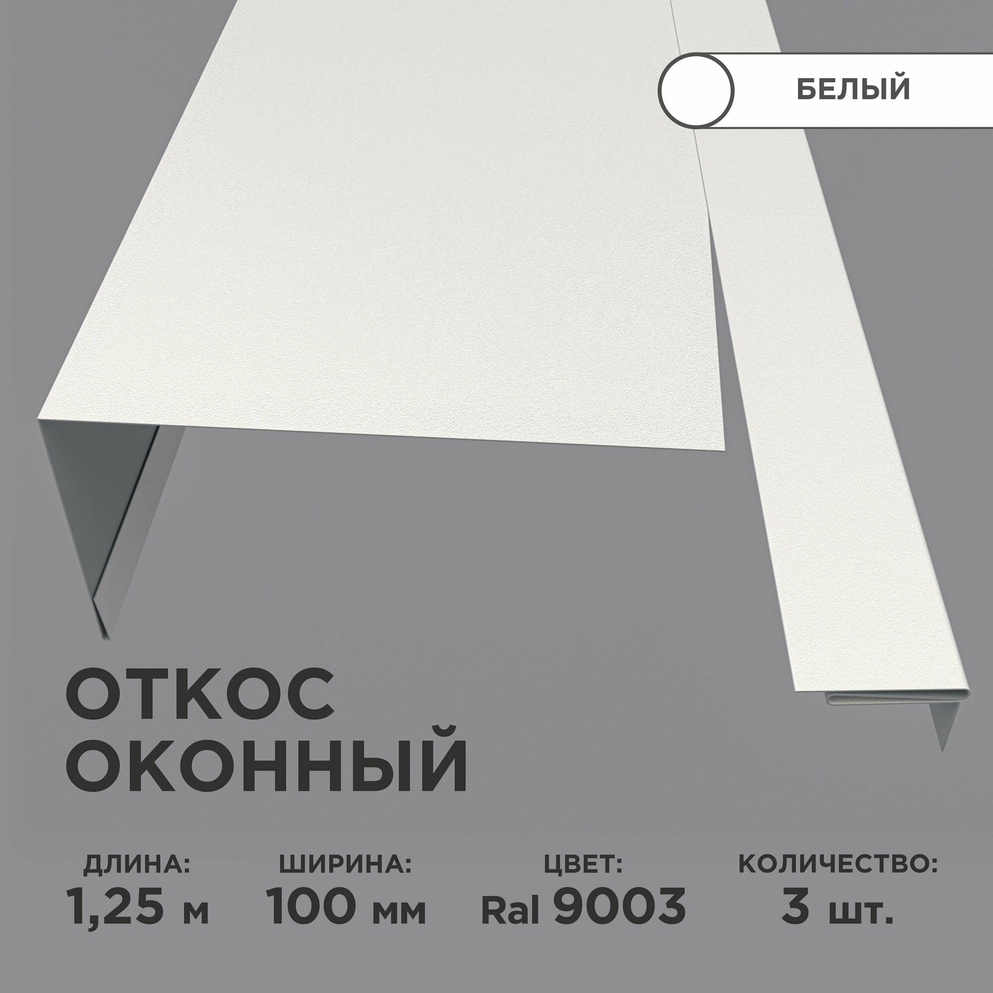 Откос оконный, ширина полки 100мм, обрамление окон снаружи, цвет 9003(белый), длина 1.25м. Комплект 3 штуки интересное: