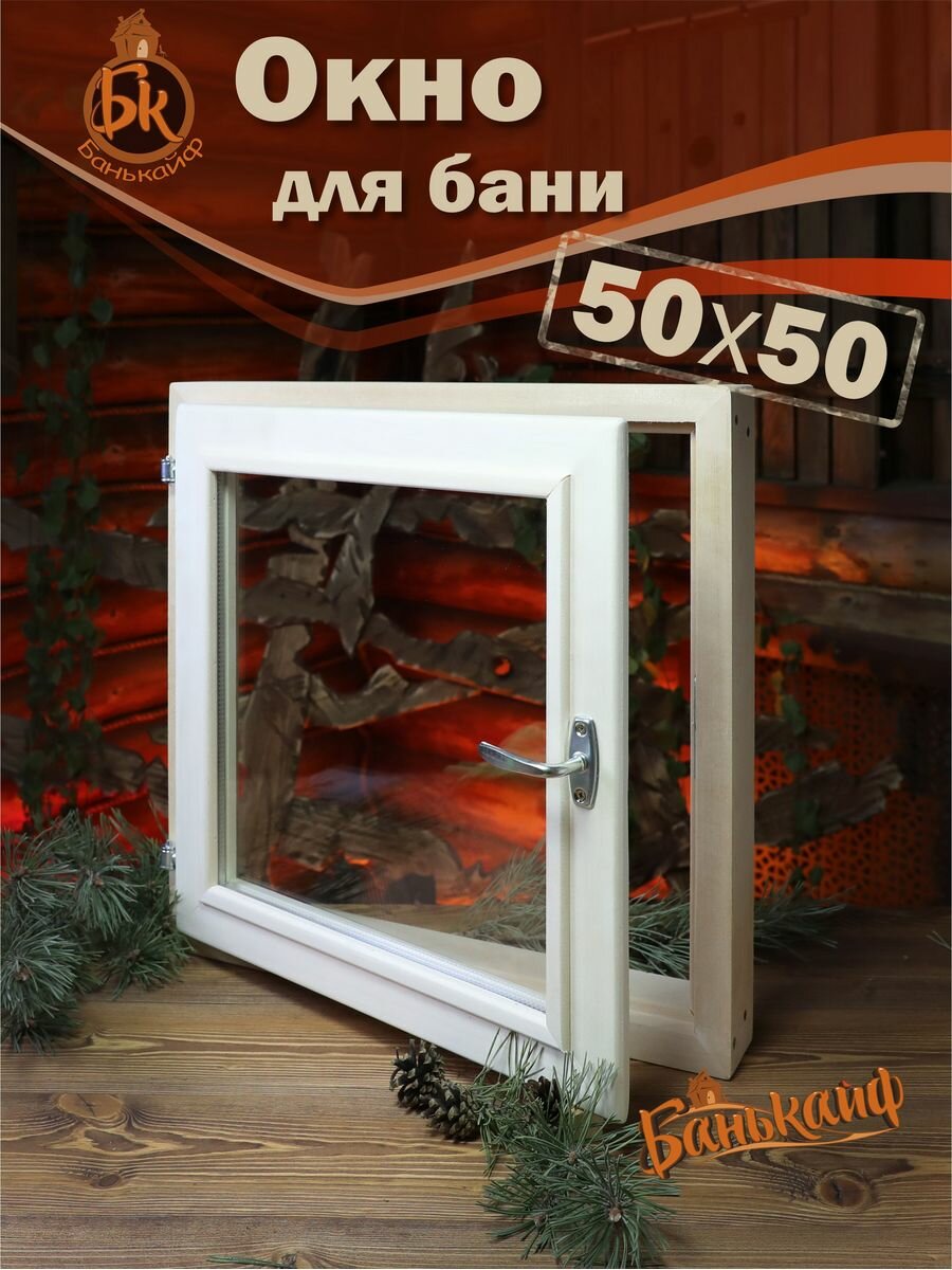 Форточка БаньКайф, дерево, 50 см x 50 см, бежевая, поворотная, высокое качество