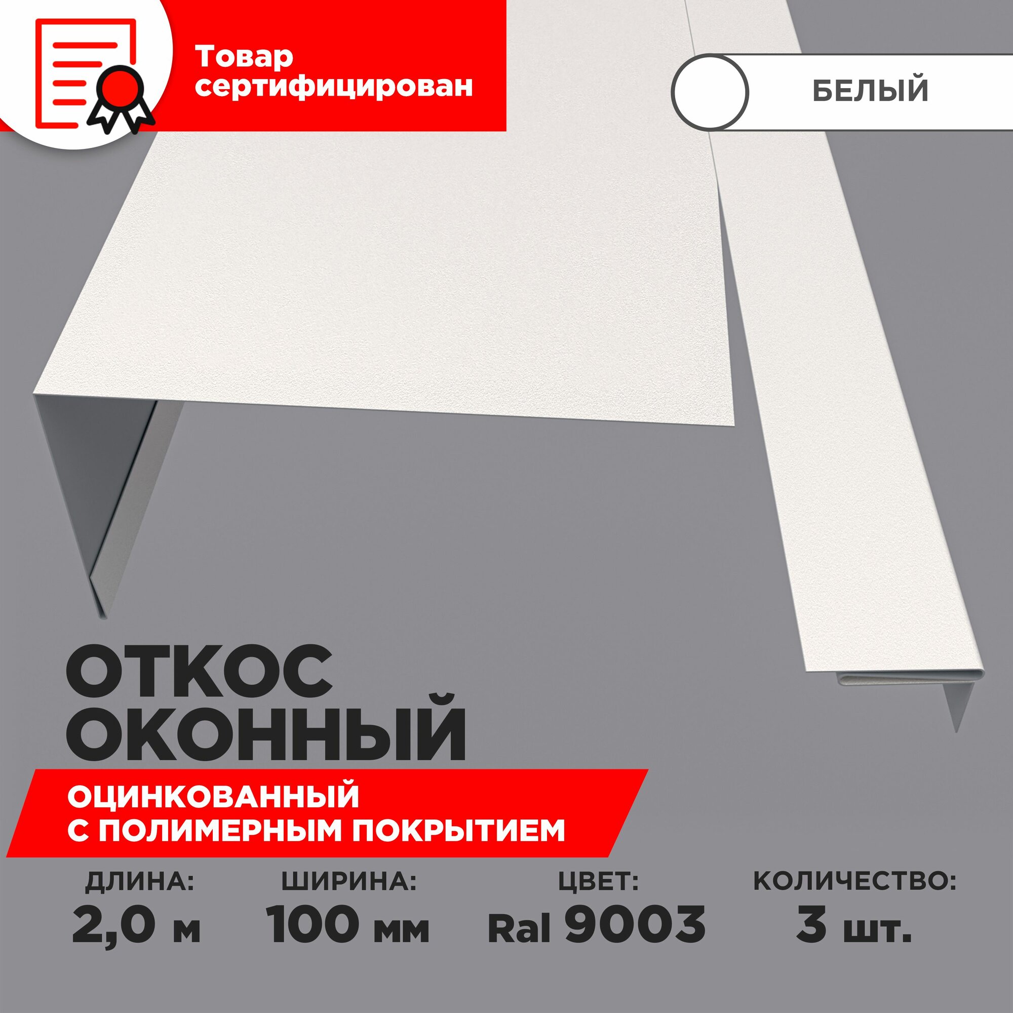 Купить Откос оконный, ширина полки 100мм, обрамление окон снаружи, цвет 9003(белый), длина 2м. Комплект 3 штуки