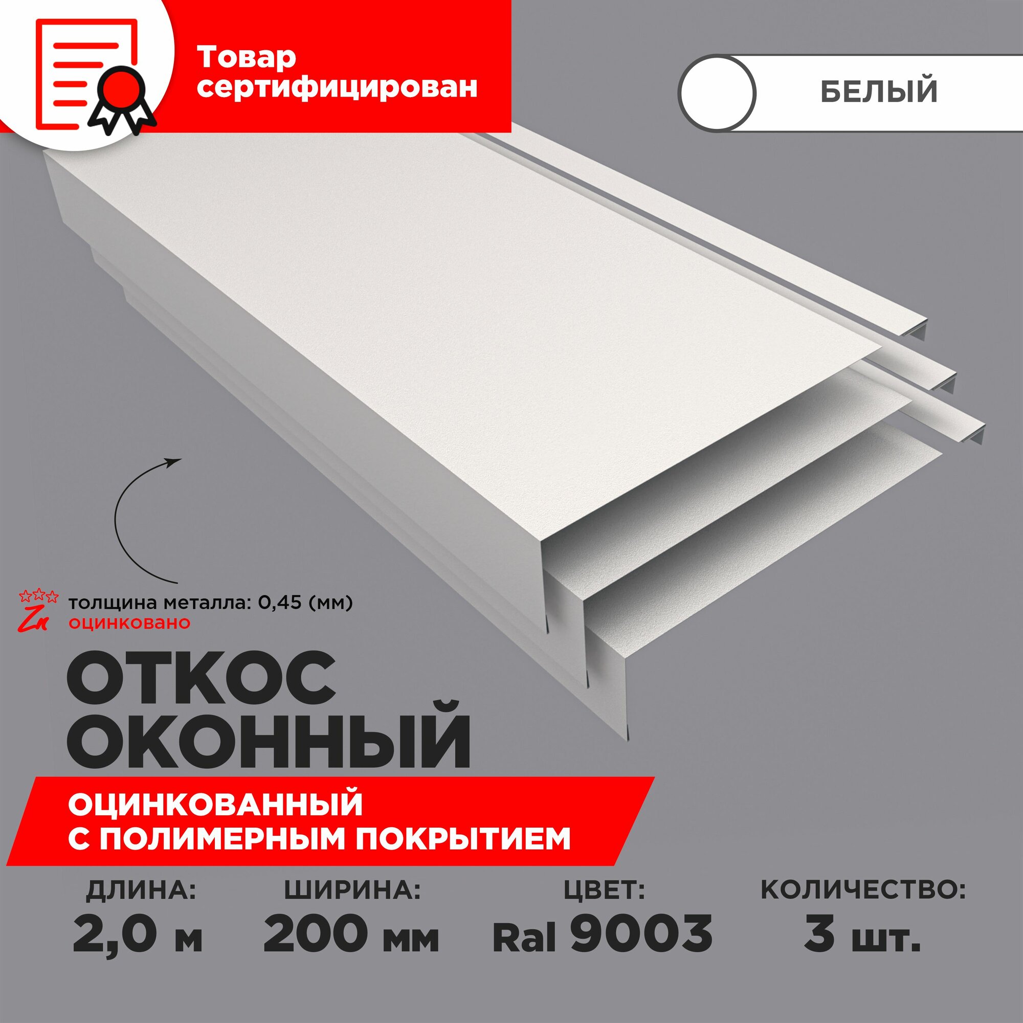 Купить Откос оконный, ширина полки 200мм, обрамление окон снаружи, цвет 9003(белый), длина 2м. Комплект 3 штуки