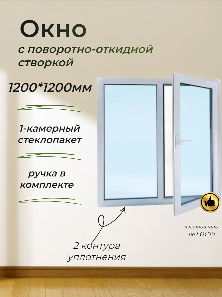 Пластиковое окно ПВХ (1200*1200) поворотно-откидная правая створка, стеклопакет 24мм (2 стекла) интересное: