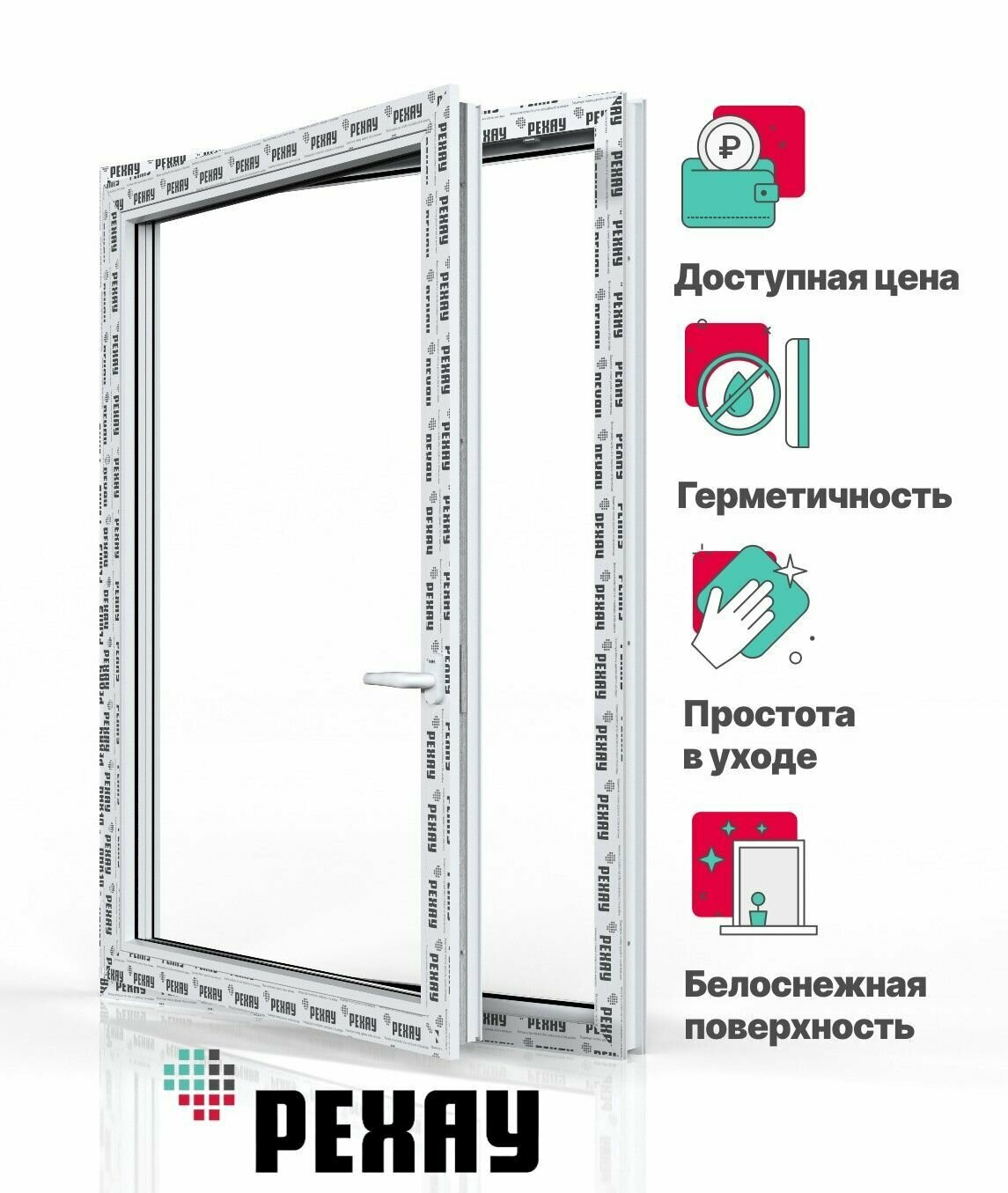 Пластиковое окно ПВХ РЕХАУ BLITZ одностворчатое пов-отк правое, 800х800 мм (ВхШ) с учетом подставочного профиля, однокамерное, белое