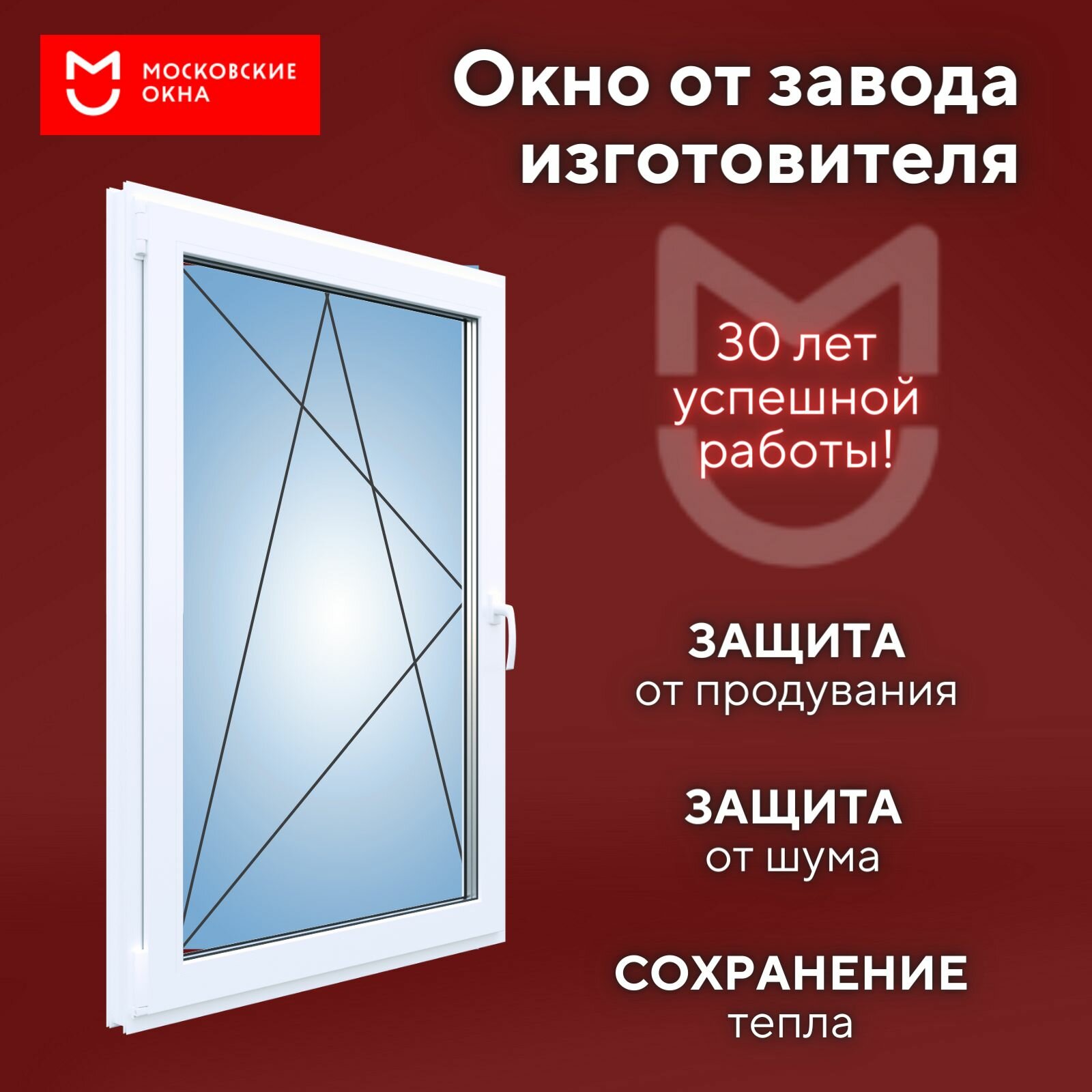 Пластиковое окно 1300х600 мм (ВхШ) Московские окна, поворотно-откидное, белое