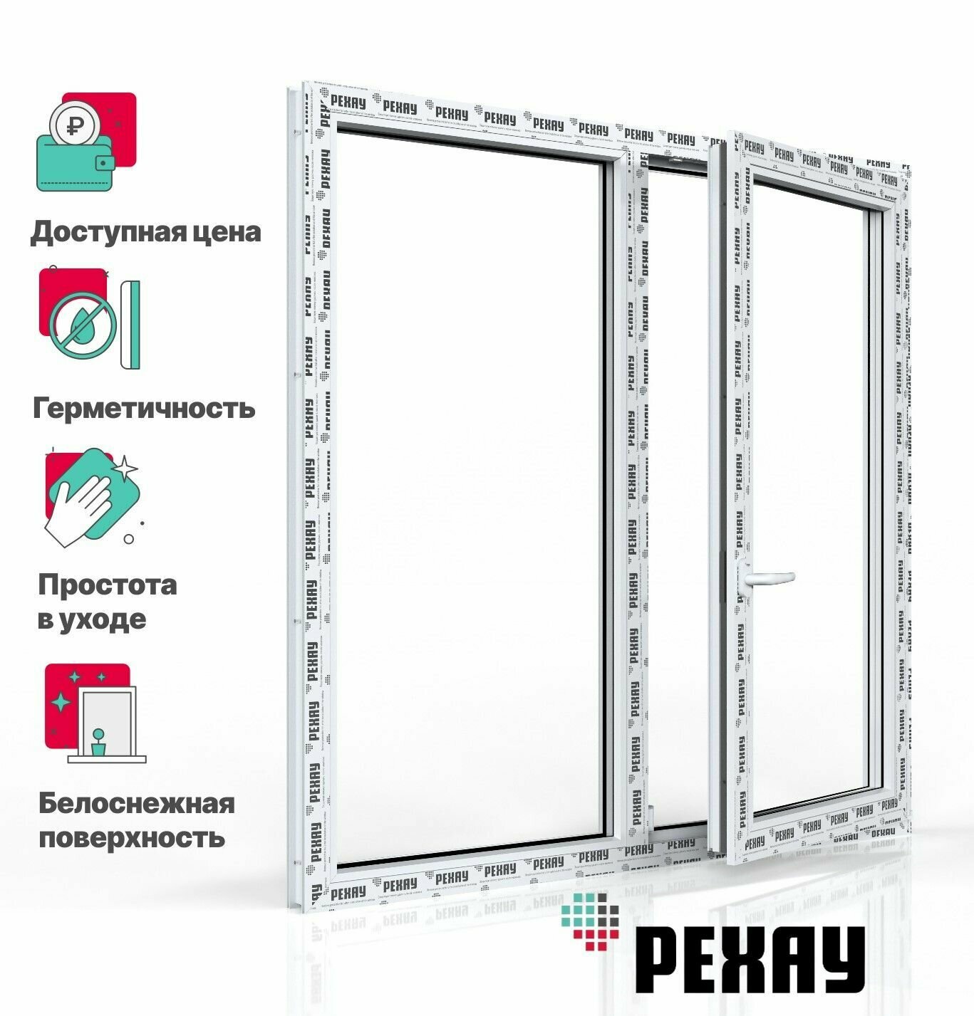 Пластиковое окно ПВХ РЕХАУ BLITZ 1500х1500 мм (ВхШ), двухстворчатое, глухое левое / поворотно-откидное правое, однокамерный стеклопакет, белое