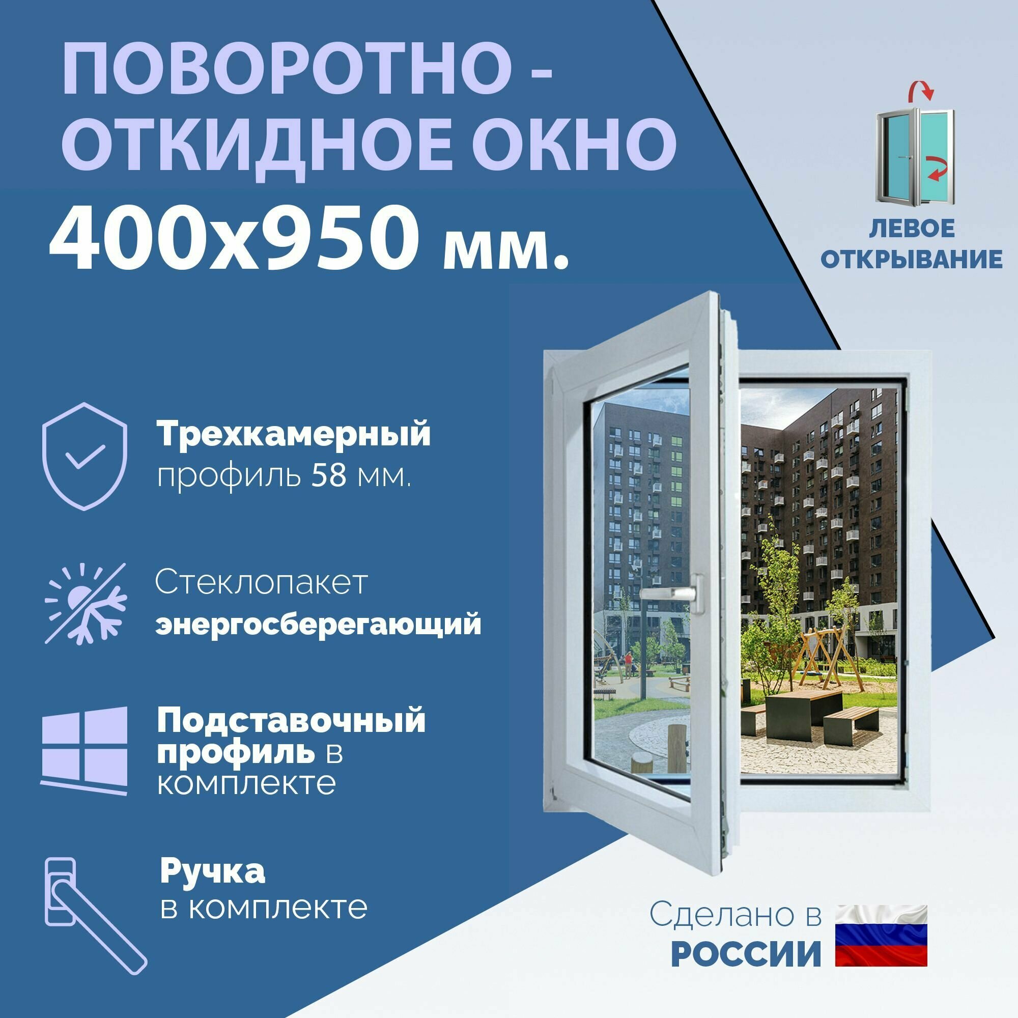 Купить Поворотно-откидное ПВХ окно левое (ШхВ) 400х950 мм. (40х95см.) Экологичный профиль KRAUSS - 58 мм. Энергосберегающий стеклопакет в 2 стекла - 24 мм.