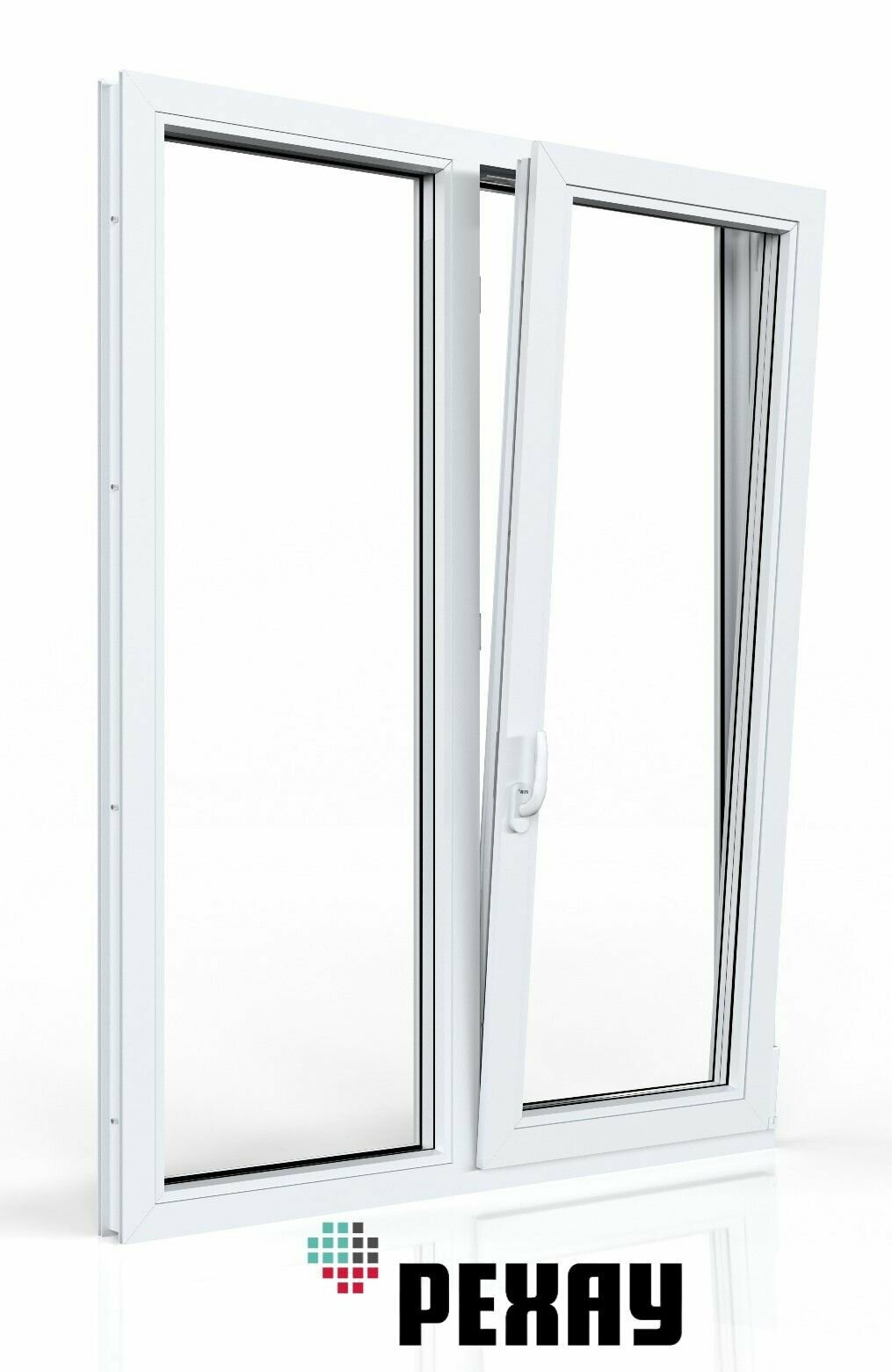 Пластиковое окно ПВХ РЕХАУ BLITZ 1400х1300 мм (ВхШ), двухстворчатое, поворотно-откидное левое / глухое правое, двухкамерный стеклопакет, белое