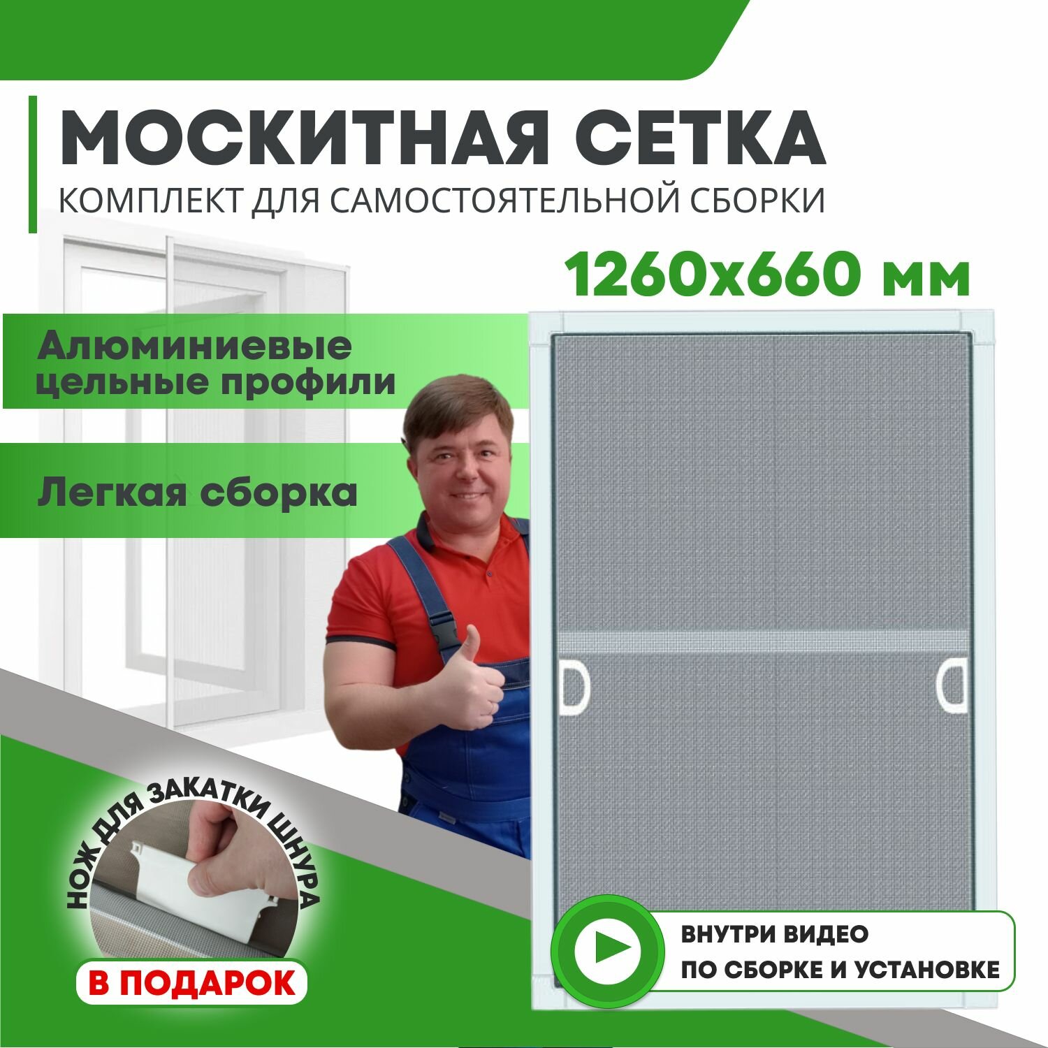 Москитная сетка на окна (до 1260х660мм) с профилем и креплением на окно, ремкомплект для самостоятельной сборки москитной сетки интересное: