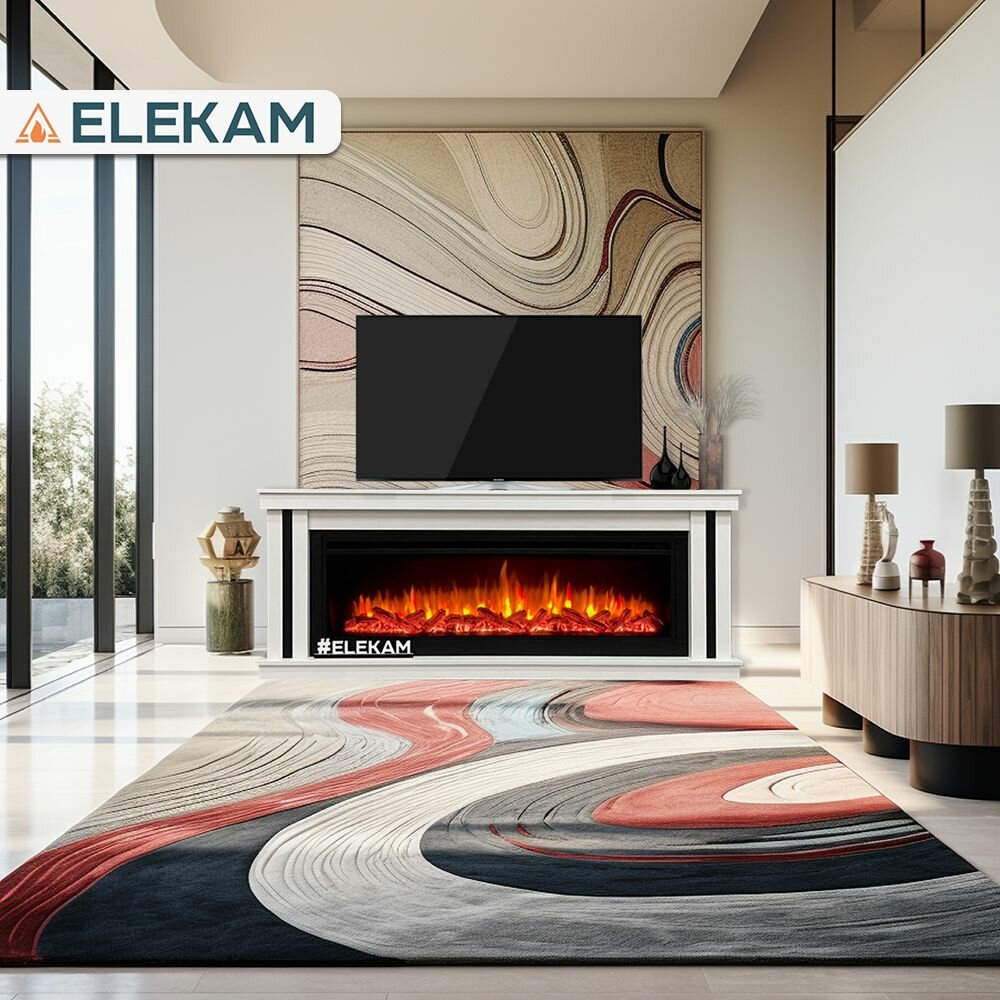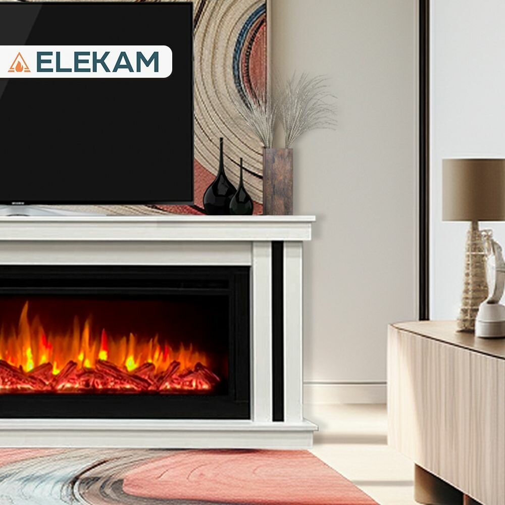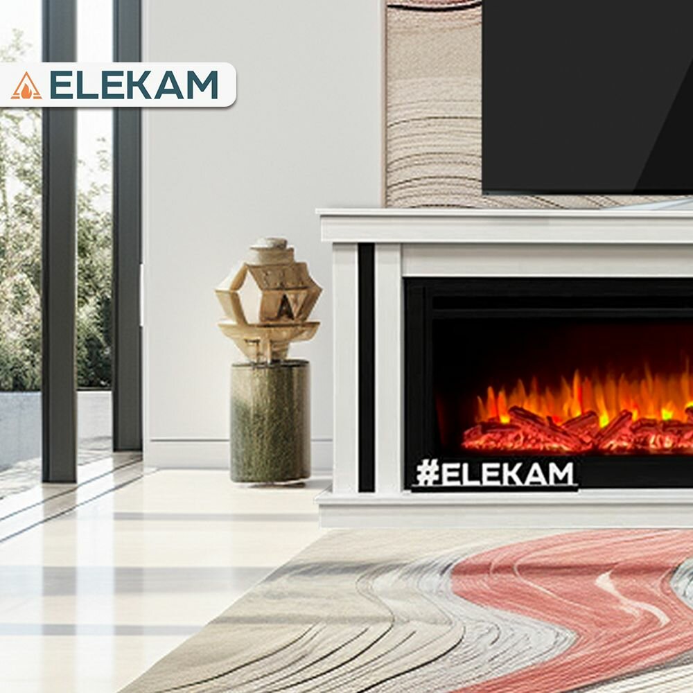 Камин электрический напольный ELEKAM Line 60 с очагом и порталом, с пультом, обогревом и имитацией огня (Электрокамин)