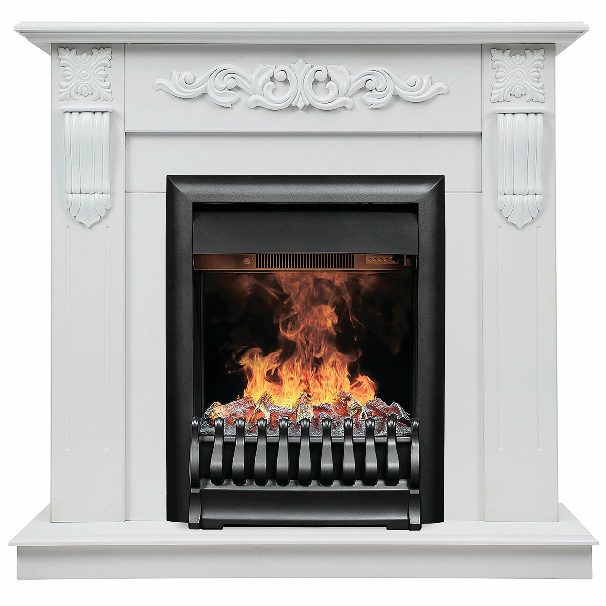 RealFlame Электрокамин Sorento WT с Fobos Lux S BL, звук потрескивания дров, без пульта ДУ