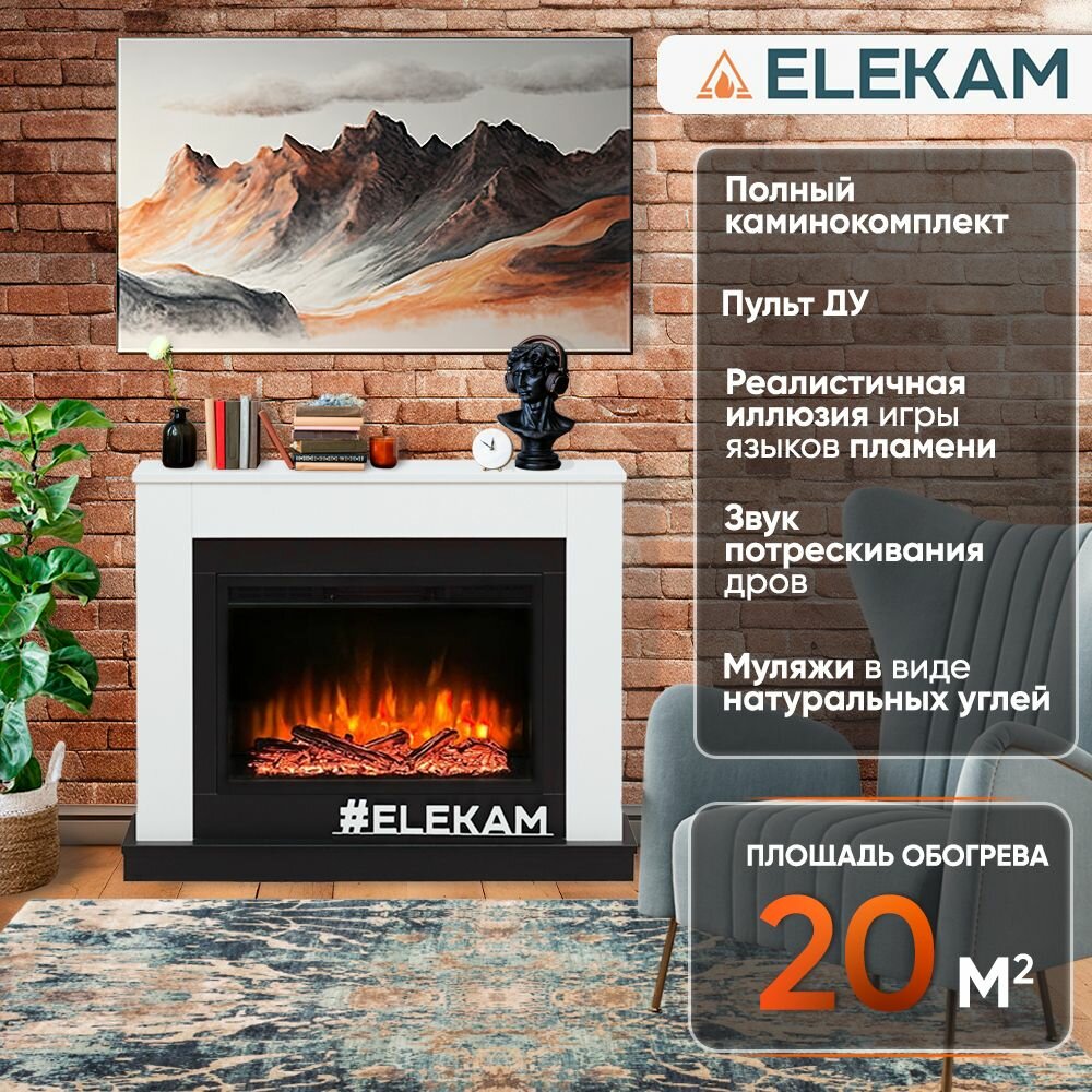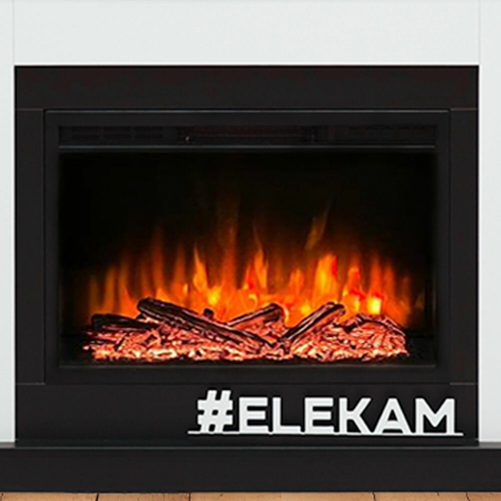 Электрический камин ELEKAM LIGHT standart белый с пультом, обогревом и звуком потрескивания дров (Электрокамин)