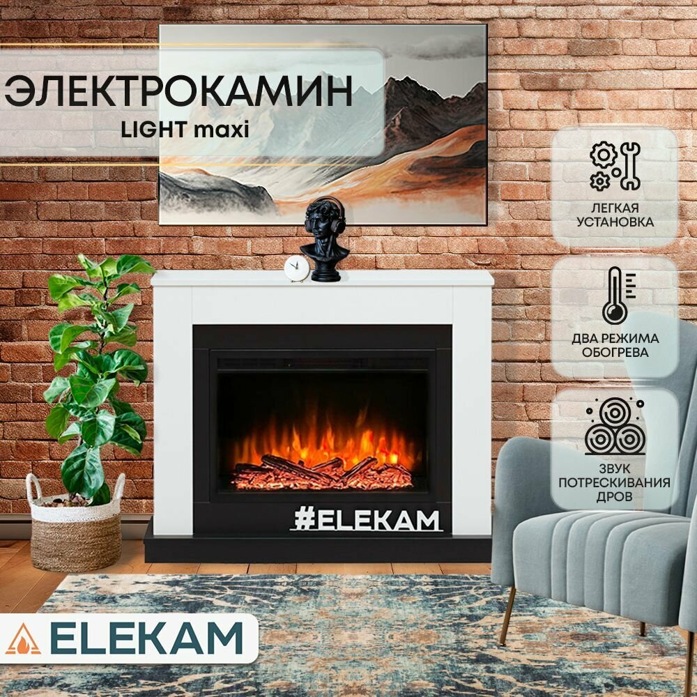 Камин электрический напольный ELEKAM LIGHT max с очагом и порталом, с пультом, обогревом и имитацией огня (Электрокамин)