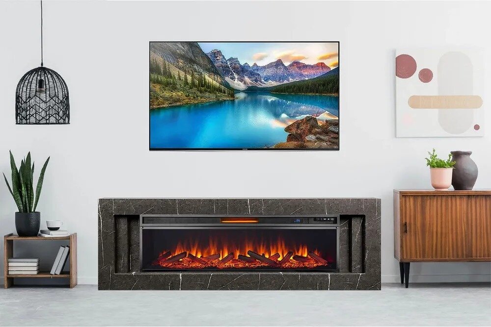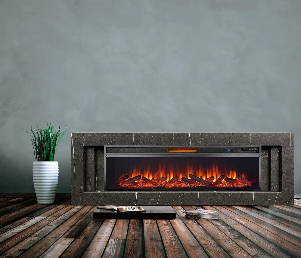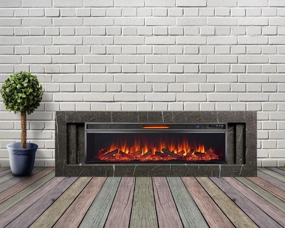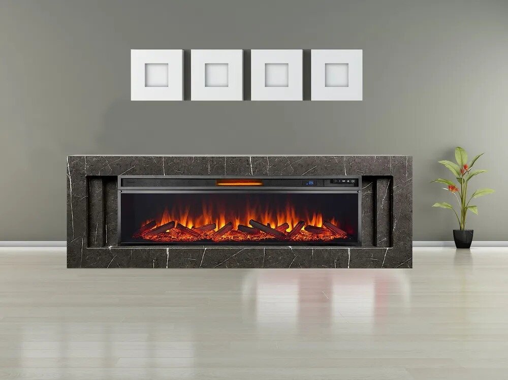 Линейный электрокамин Royal Flame Line SFT серый мрамор с очагом Vision 60 LOG LED, дрова, обогрев, пульт ДУ (линейный электрический камин) интересное: