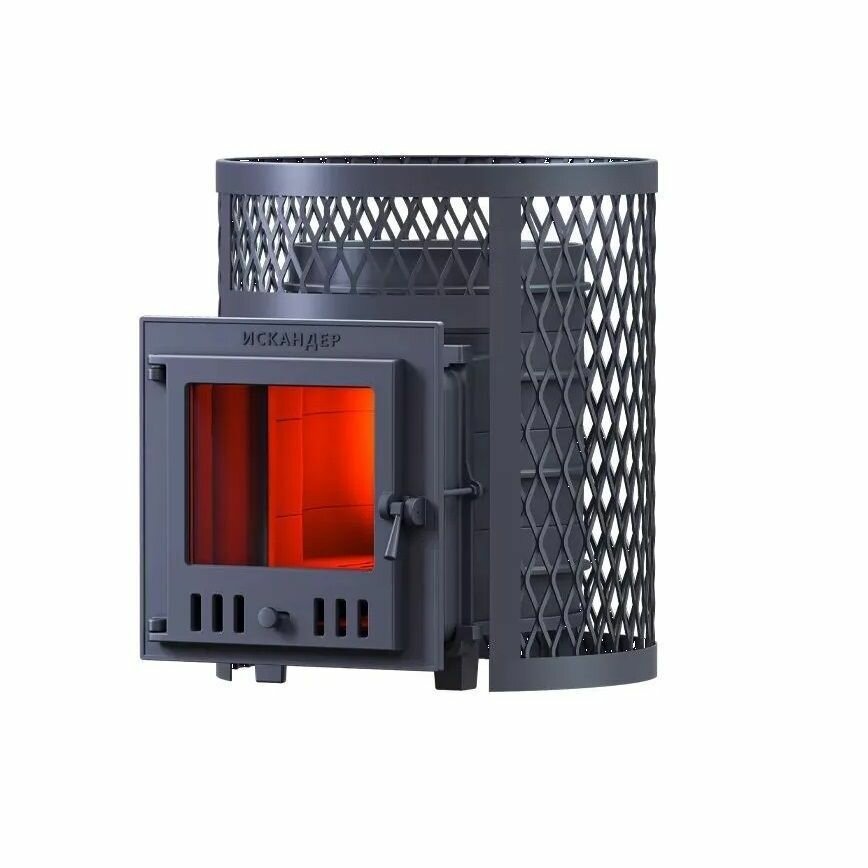 Чугунная дровяная печь для бани Искандер 25 в сетке стекло интересное: