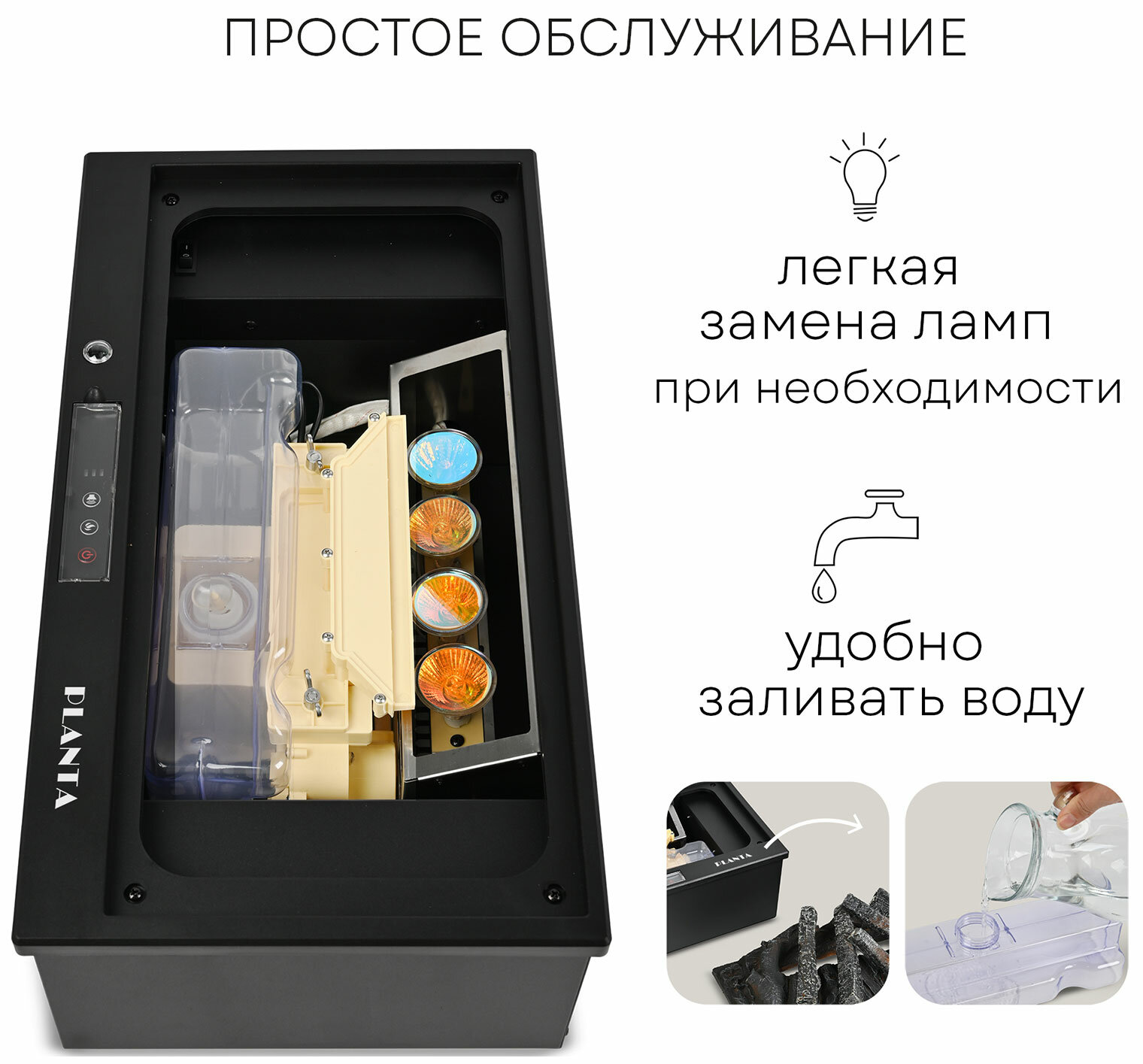 PLANTA Электрокамин паровой (3D камин) PL-FPM100, разноцветное пламя, управление с телефона