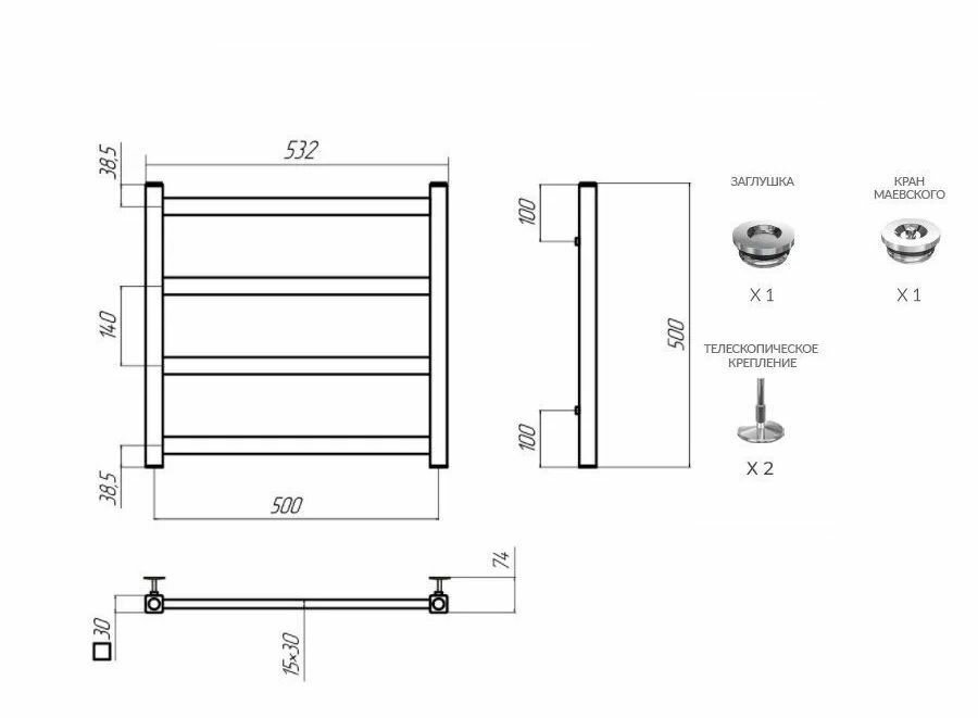 | Дополнительная информация | В комплекте: кран маевского, крепежь к стене, заглушка; Дополнительно можно приобрести: уголки либо краны,эксцентрики и отражатели. |