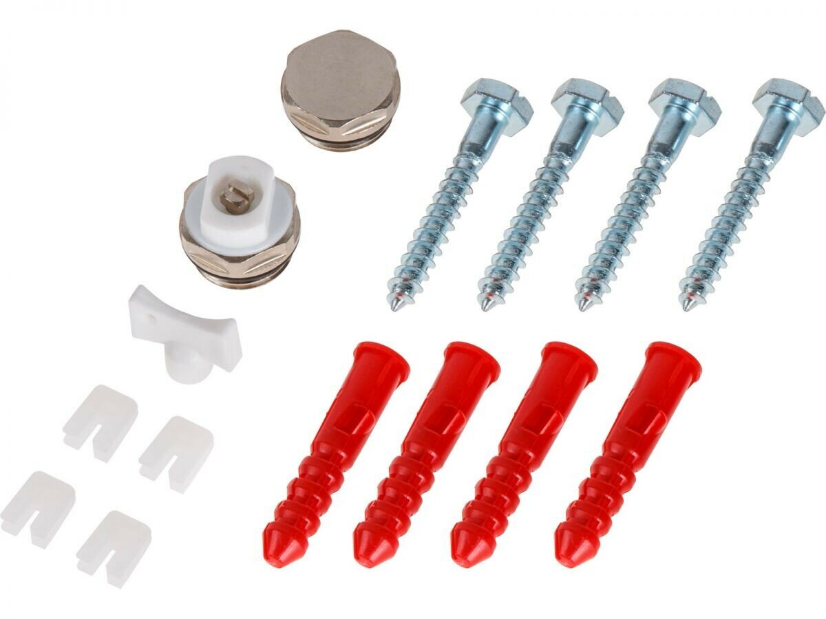 | Подробная комплектация | Радиатор; Паспорт с гарантийным талоном; Ключ для развоздушника - 1 шт.; Заглушка - 1 шт.; Клапан воздуховыпускной (кран Маевского) - 1 шт.; Дюбель с шурупом - комплект; Пластиковая клипса - комплект. |