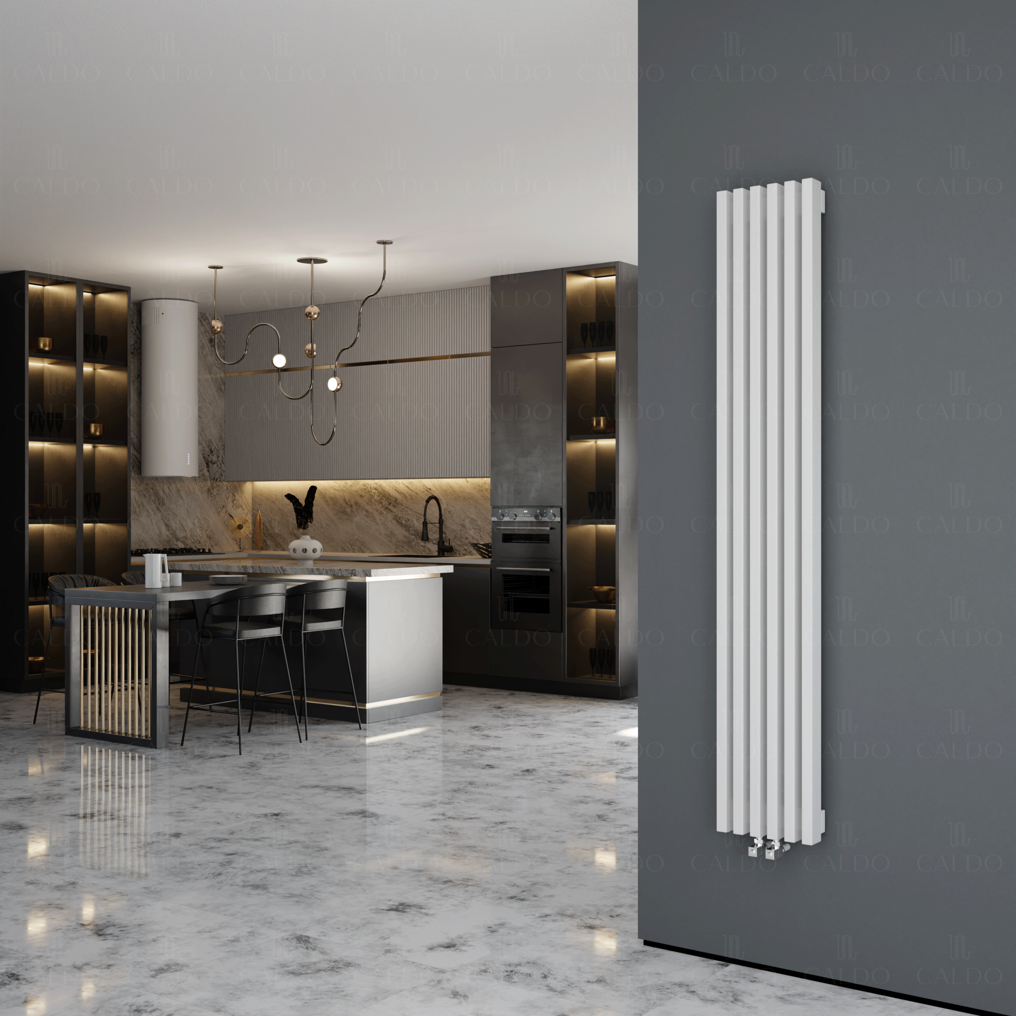 Вертикальный трубчатый радиатор отопления Bordo 1750 8 секций, белый, ниж-центр