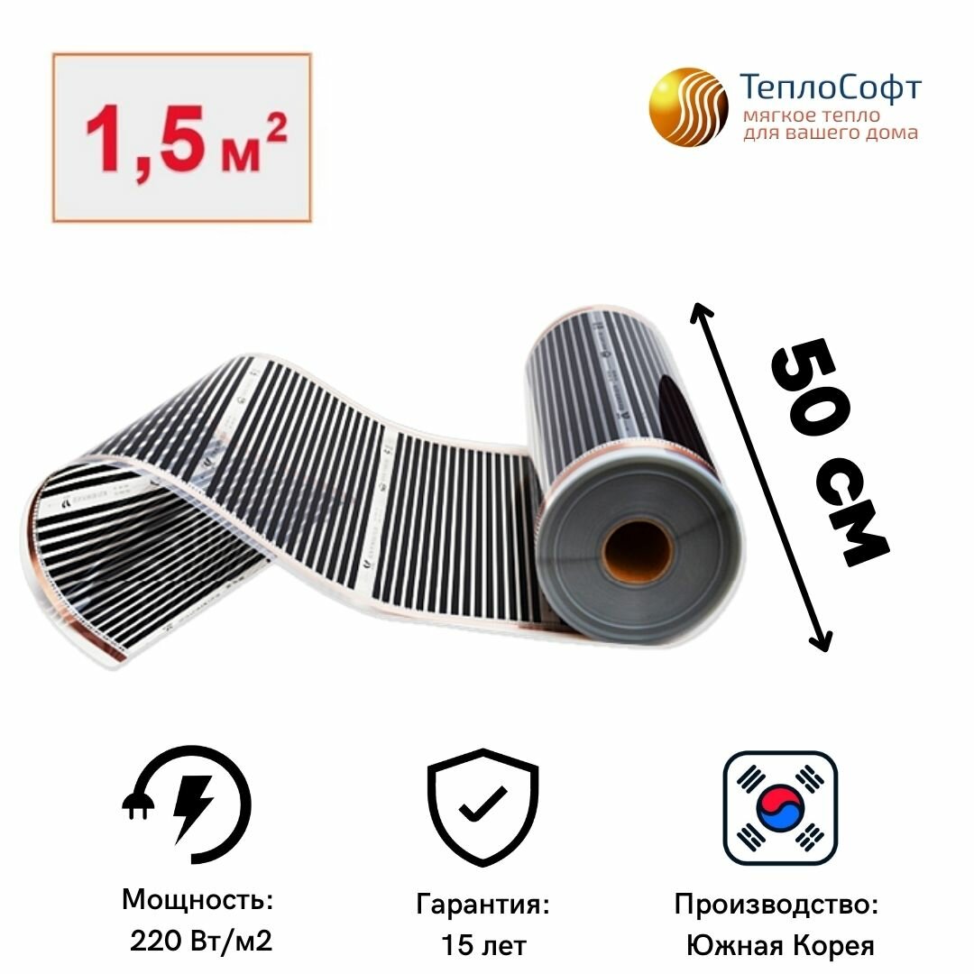 Инфракрасный пленочный теплый пол Теплософт 1,5 м², 330 Вт с терморегулятором