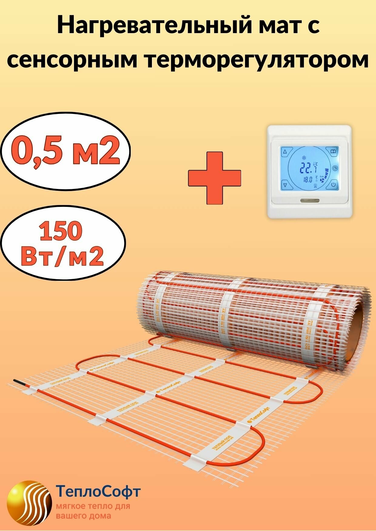 Купить Теплый пол электрический Теплософт под плитку 0,5 м2 с сенсорным терморегулятором. Нагревательный мат 0,5м.кв