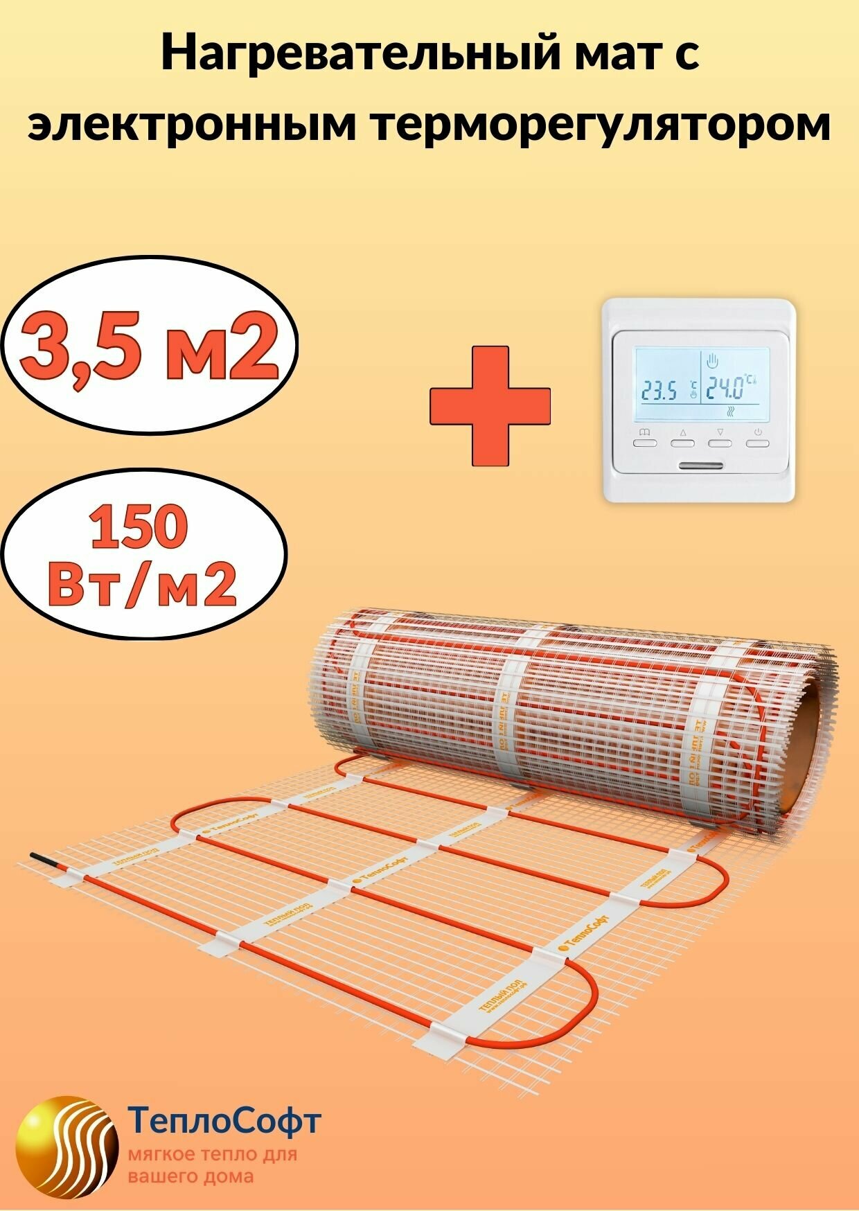 Купить Теплый пол электрический Теплософт под плитку 3,5 м2 с электронным терморегулятором. Нагревательный мат 3,5 м.кв.