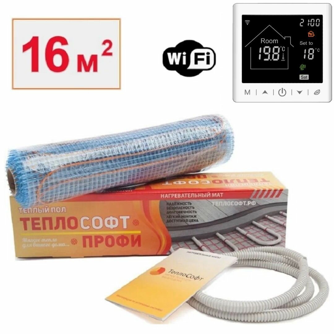 Купить Теплый пол электрический под плитку 16 м2 / Нагревательный мат Теплософт Профи с умным Wi-Fi терморегулятором